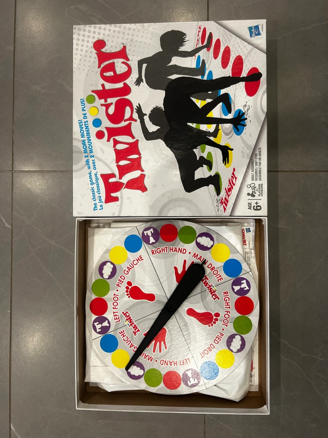Selling a Twister board game. It's the classic game with even more moves! Suitable for ages 6 and up, and for 2+ players. Get ready for some fun and laughter with family and friends!