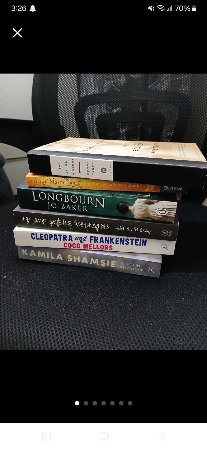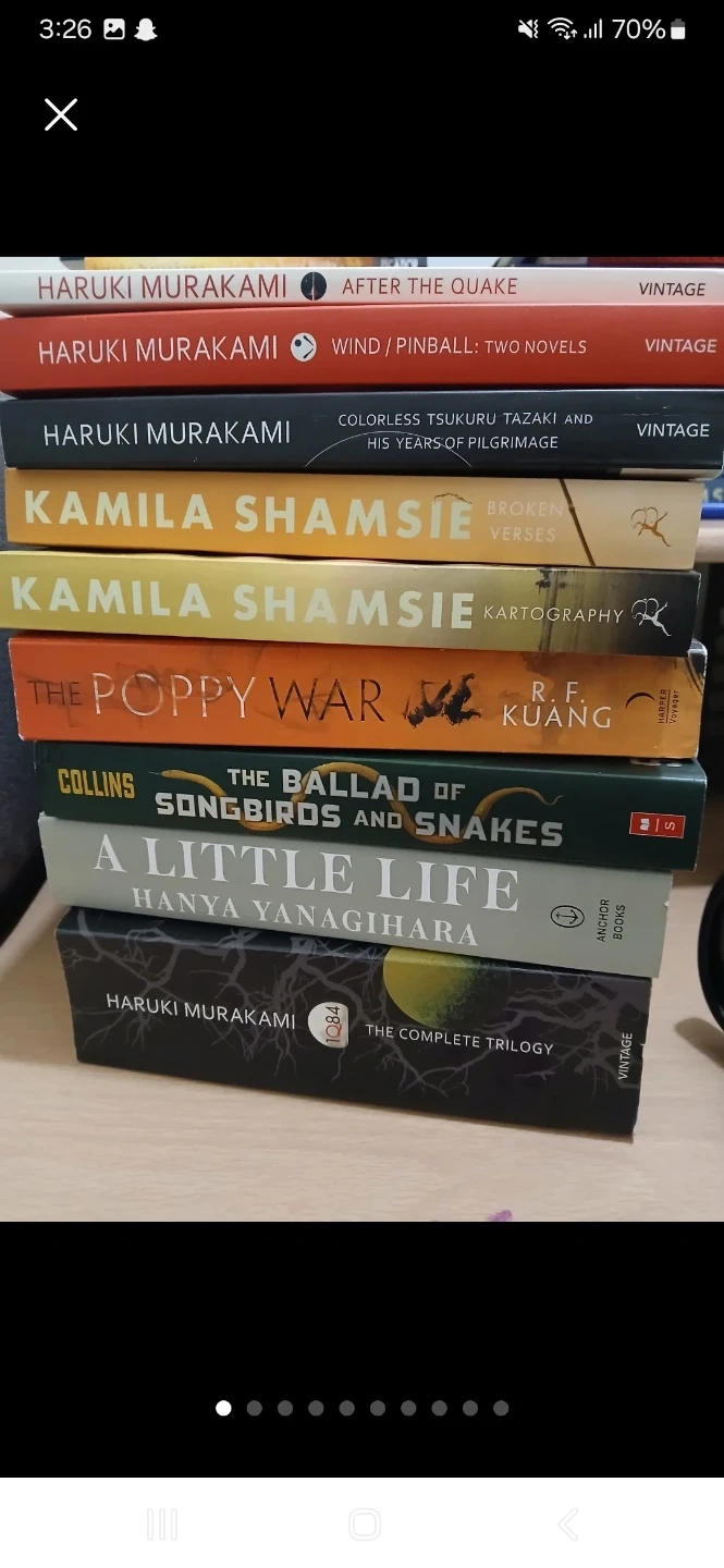 A selection of fiction books. Includes titles by Haruki Murakami, Kamila Shamsie, and more. Various authors and genres.