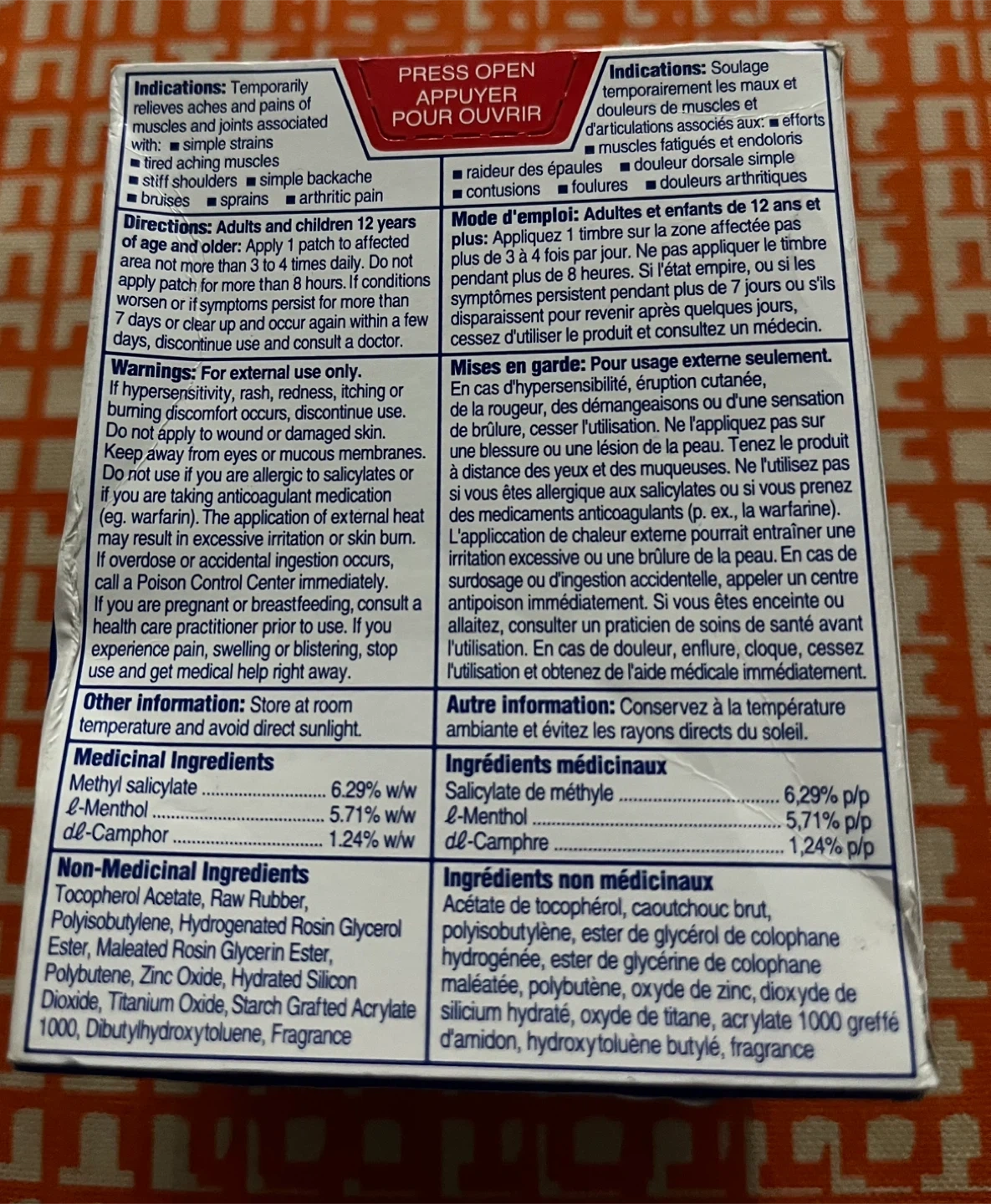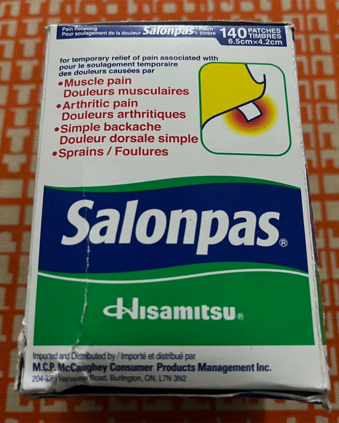 Salonpas pain relieving patches offer temporary relief for muscle and arthritic pain, backaches, and sprains. This box contains 140 patches, each measuring 6.5cm x 4.2cm. Manufactured in Japan.