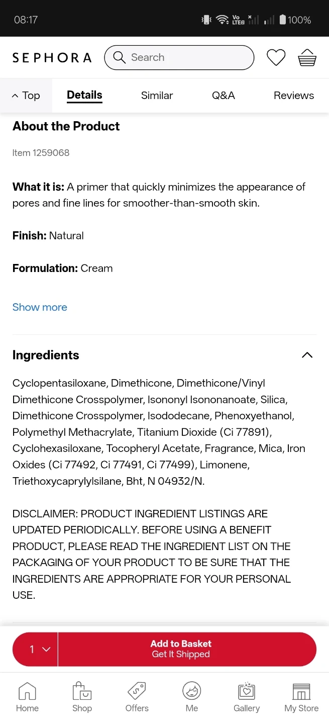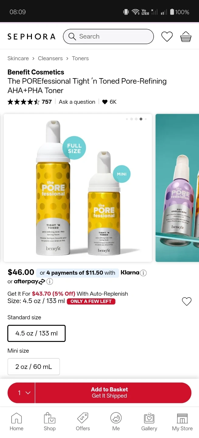 Awesome Benefit POREfessional set. Has the Pore Primer and Tight 'N Toned pore-refining AHA+PHA toning foam. Good for smoothing skin and tightening pores.