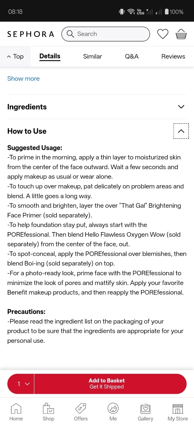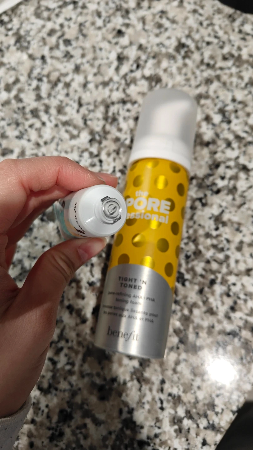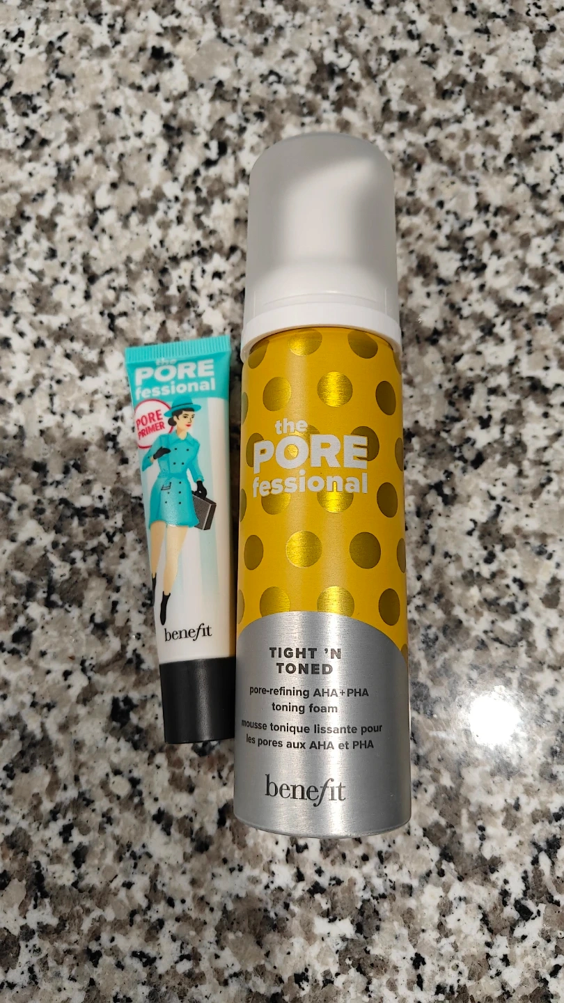 Awesome Benefit POREfessional set. Has the Pore Primer and Tight 'N Toned pore-refining AHA+PHA toning foam. Good for smoothing skin and tightening pores.