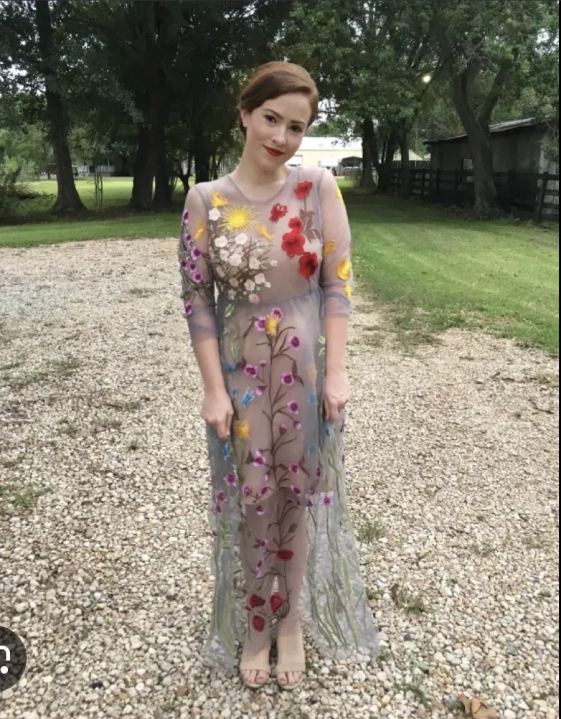 Sheer Embroidered Floral Maxi Dress sz S