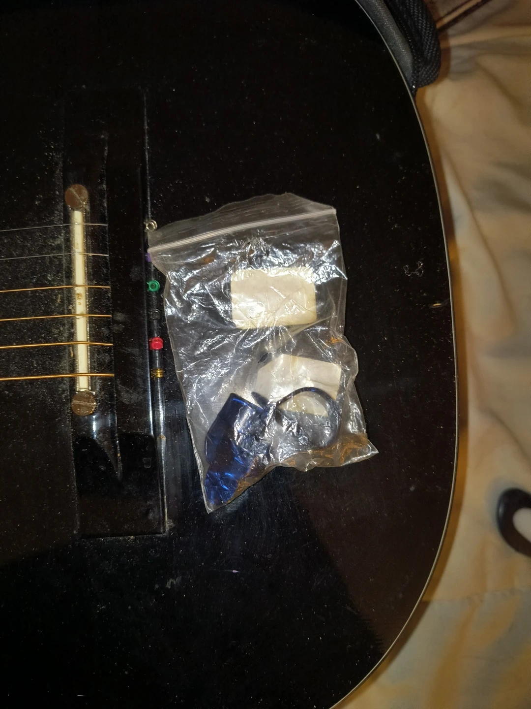 *pickup only*This is a black acoustic guitar that comes with a gig bag and a small bag of accessories. The guitar is in its case. It's a great starter instrument! Used less than 5 times in the last decade