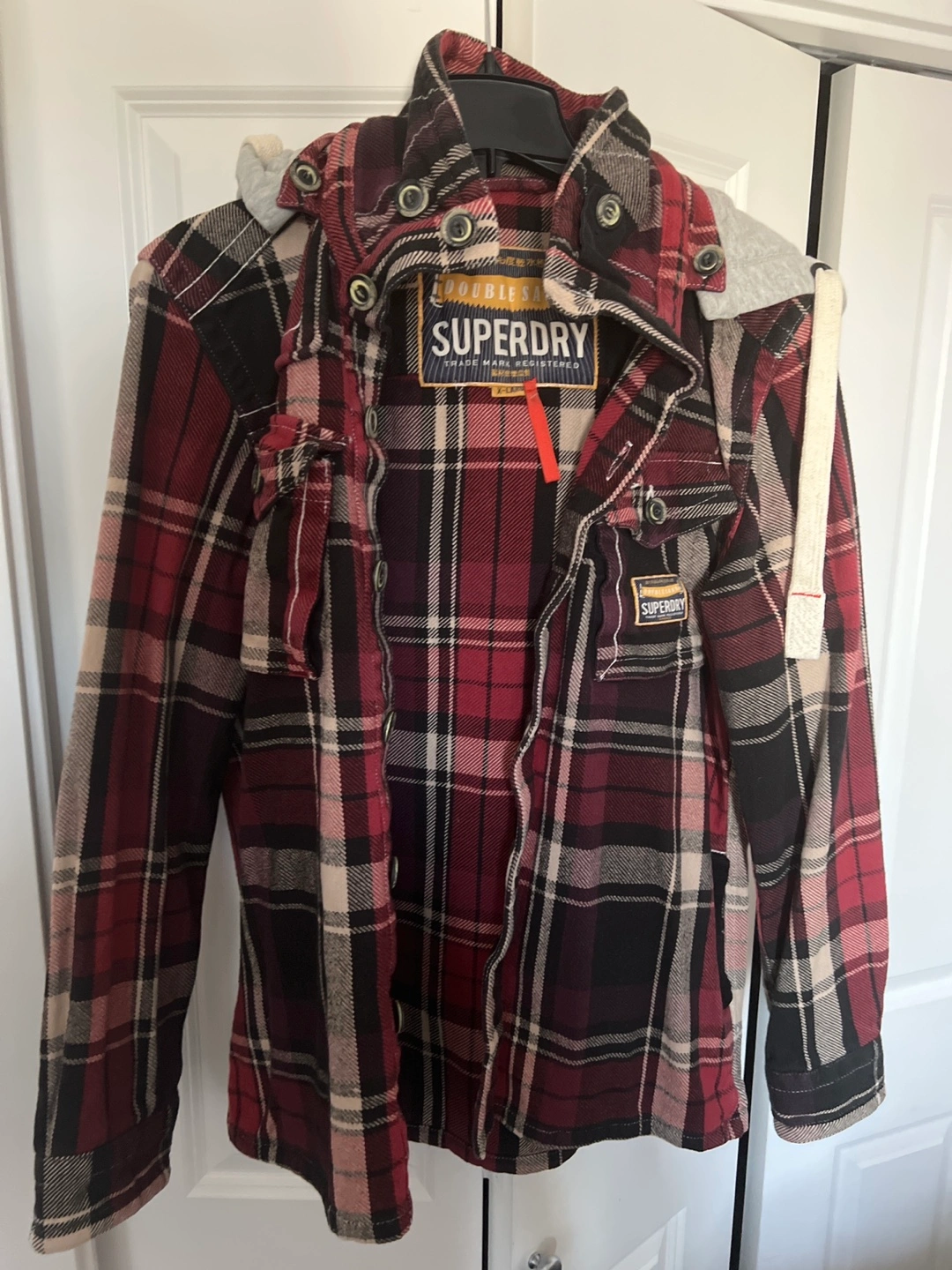 Superdry Red & Black Flannel Shirt Jacket with Hoodie
