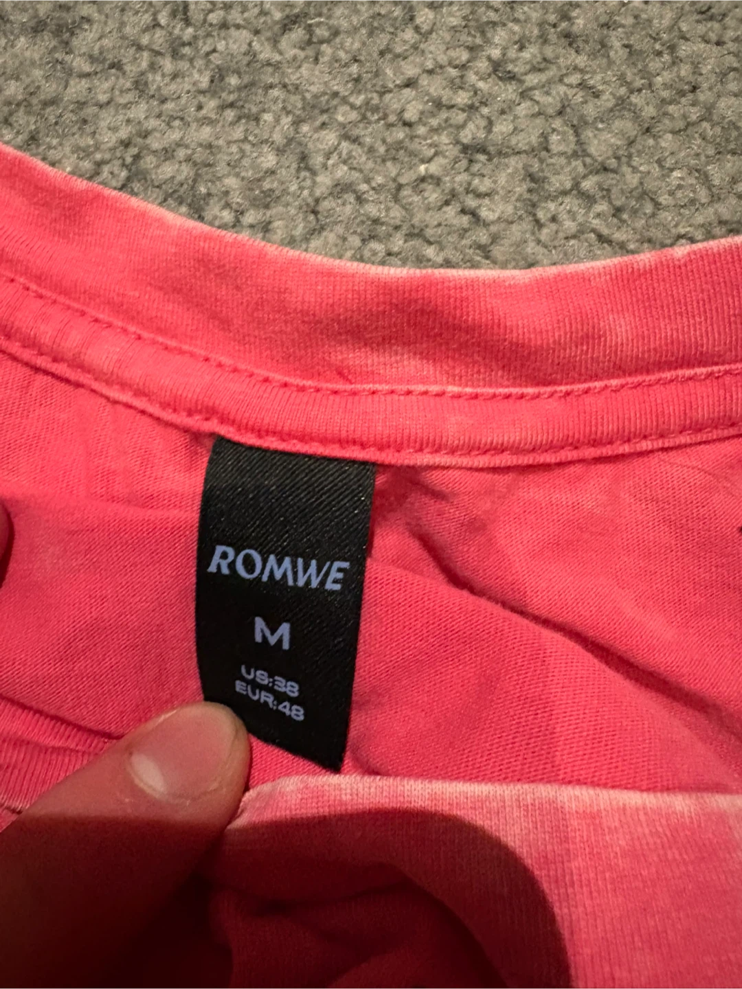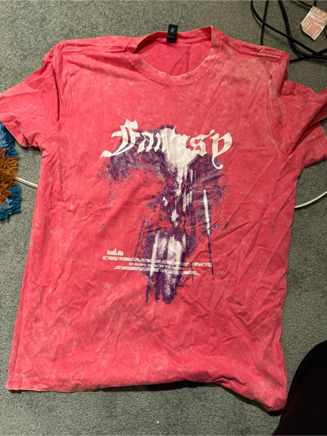 This is a Romwe t-shirt in a tie-dye pink wash. It's a size medium with a graphic design on the front. Cotton material.