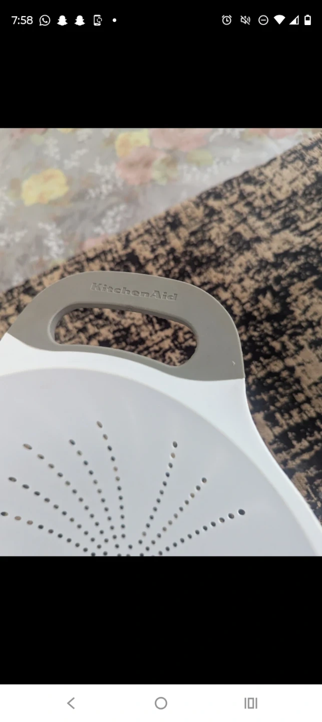 Buy & SellKitchenAid ColanderKitchenAid Colander$10This is a white KitchenAid colander. It has convenient side handles and stands on three legs. It's made of durable plastic.ConditionLike newWHERE TO MEETCheck LocationView MapSELLERverifiedSaharWexford30327 reviews0 chats·1 favorites·1 viewsSEND CHAT TO SELLERHi Sahar! I’m interested in your listing.Hi Sahar! I’m interested in your listing.Get the Karrot app to chatSign In to chat