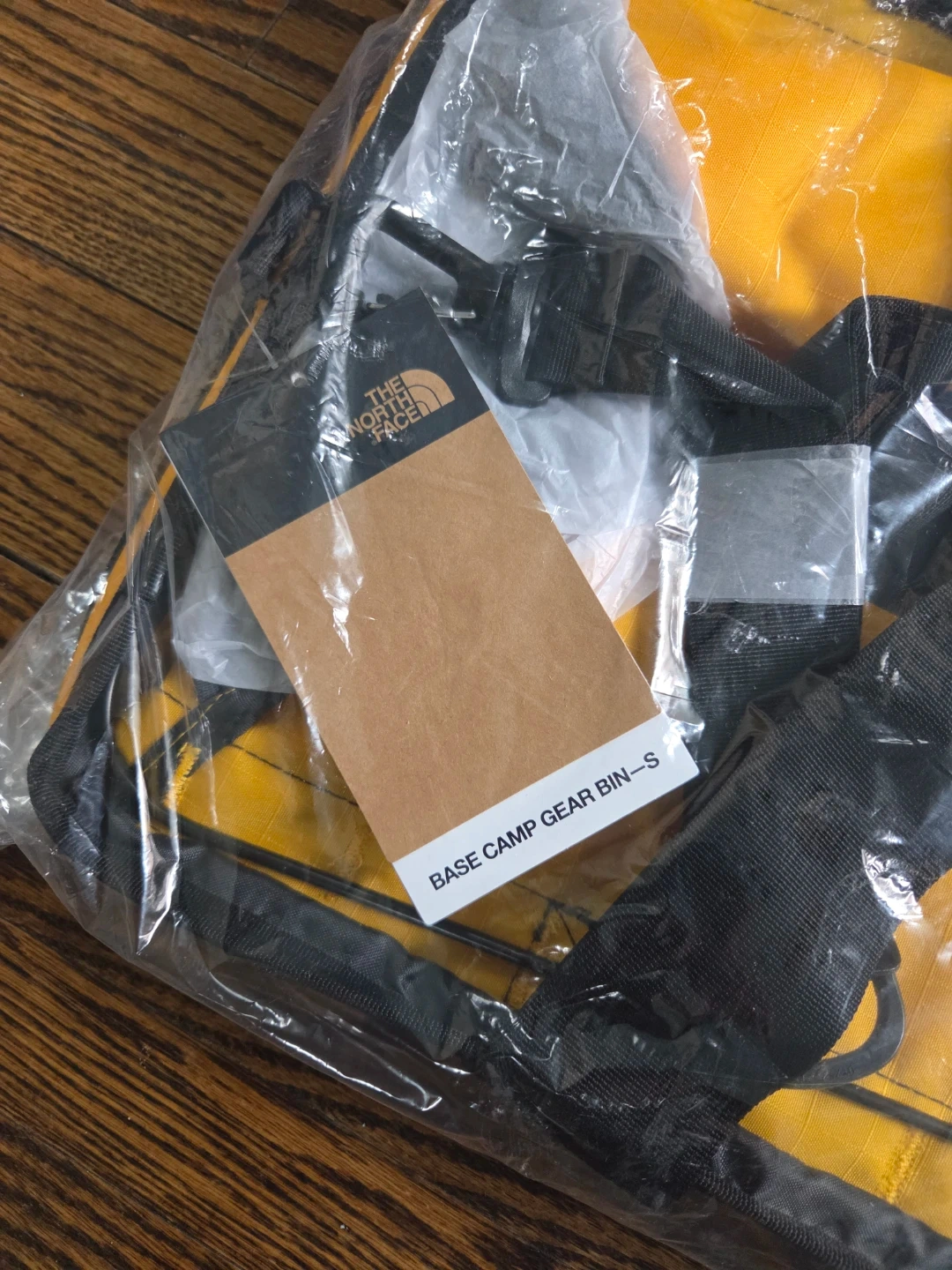 This is a brand new, The North Face Base Camp Gear Bin in size S. It's made of durable material and comes with top handles and a detachable shoulder strap.