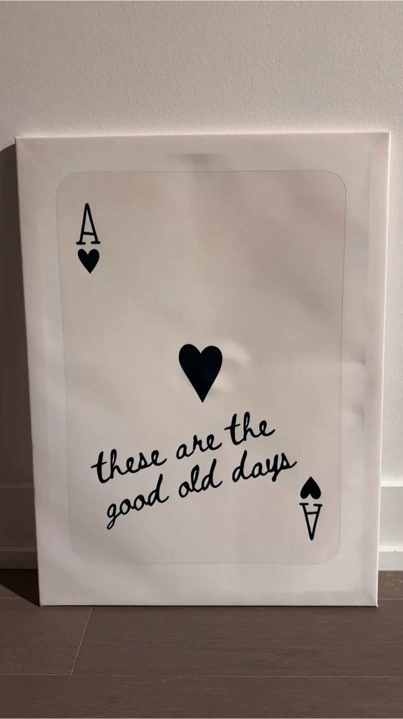 Buy & SellAce of Hearts "These are the good old days" Canvas ArtAce of Hearts "These are the good old days" Canvas Art$20Canvas art featuring an Ace of Hearts playing card design with the text "these are the good old days". Framed and ready to hang. 18x24 inches.WHERE TO MEETCheck LocationView MapSELLERverifiedElenaMimico1398 reviews0 chats·0 favorites·6 viewsSEND CHAT TO SELLERHi Elena! I’m interested in your listing.Hi Elena! I’m interested in your listing.Get the Karrot app to chatSign In to chat