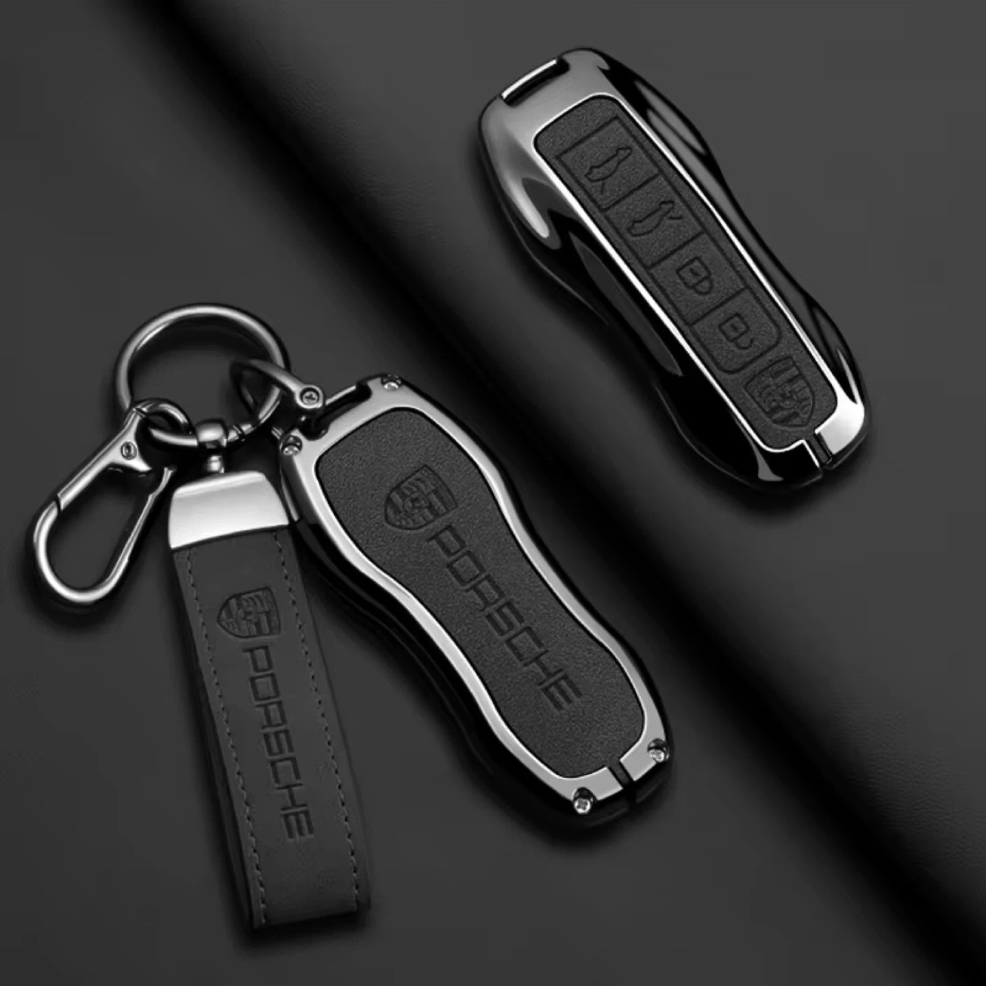 Stylish leather and metal keyring with a matching Porsche branded key case. Protects your car key while adding a touch of luxury. Comes with a secure carabiner clip for easy attachment.