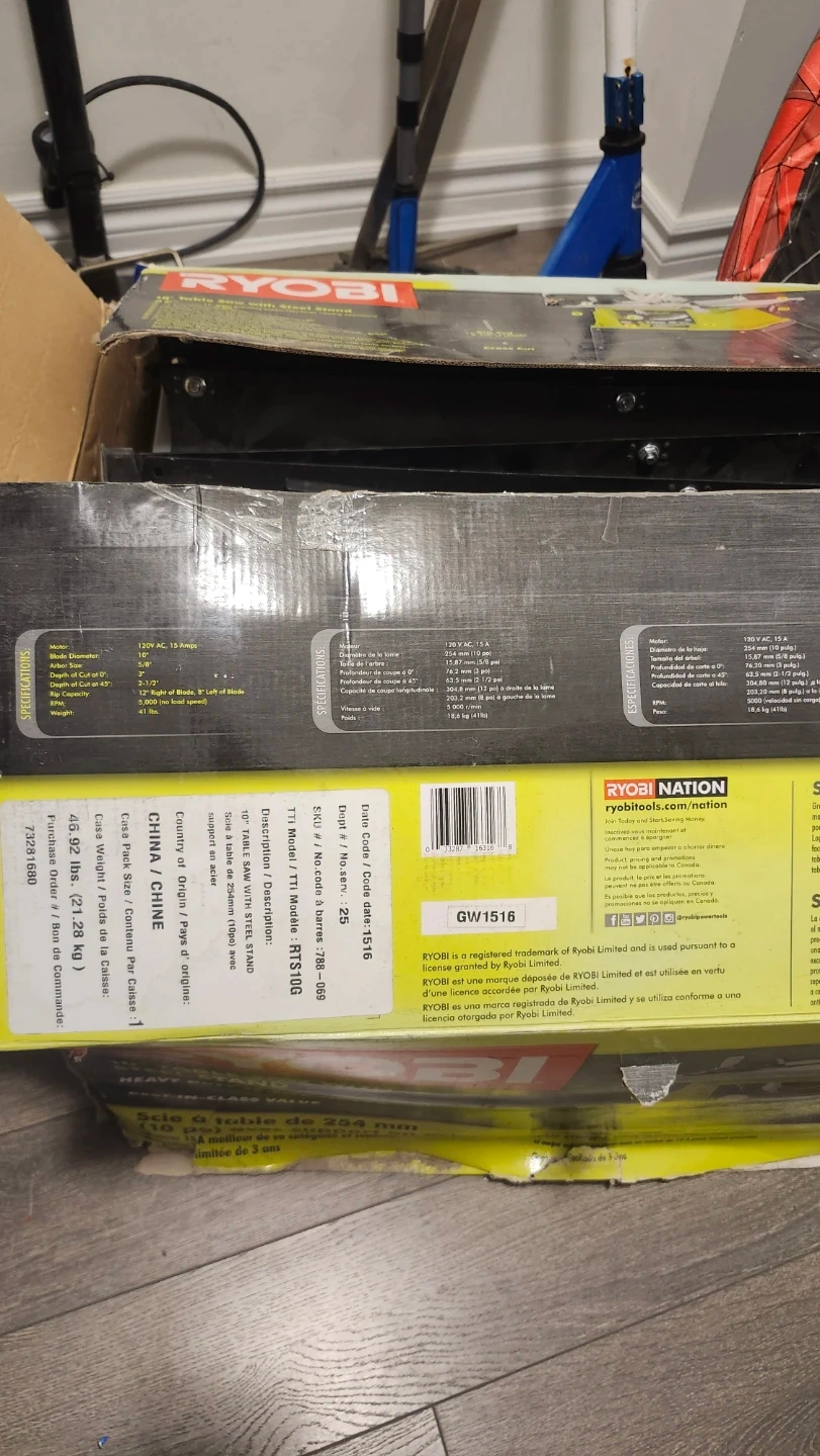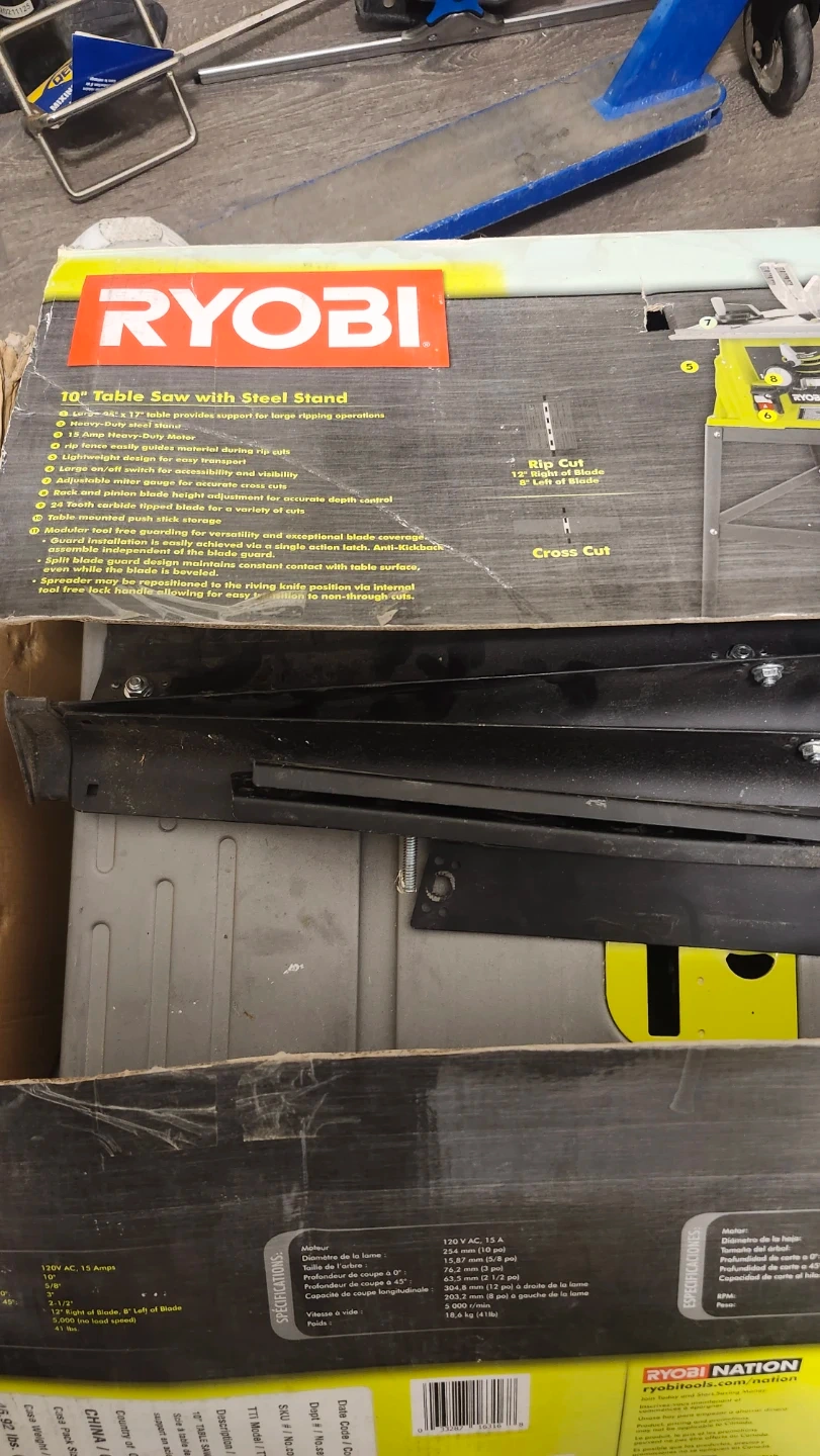 Selling a Ryobi 10" Table Saw with Steel Stand. It features a heavy-duty 15 amp motor and is designed for best-in-class value. The saw supports large ripping operations and includes a 12" crosscut blade. It operates at 120V AC, 15 Amps.