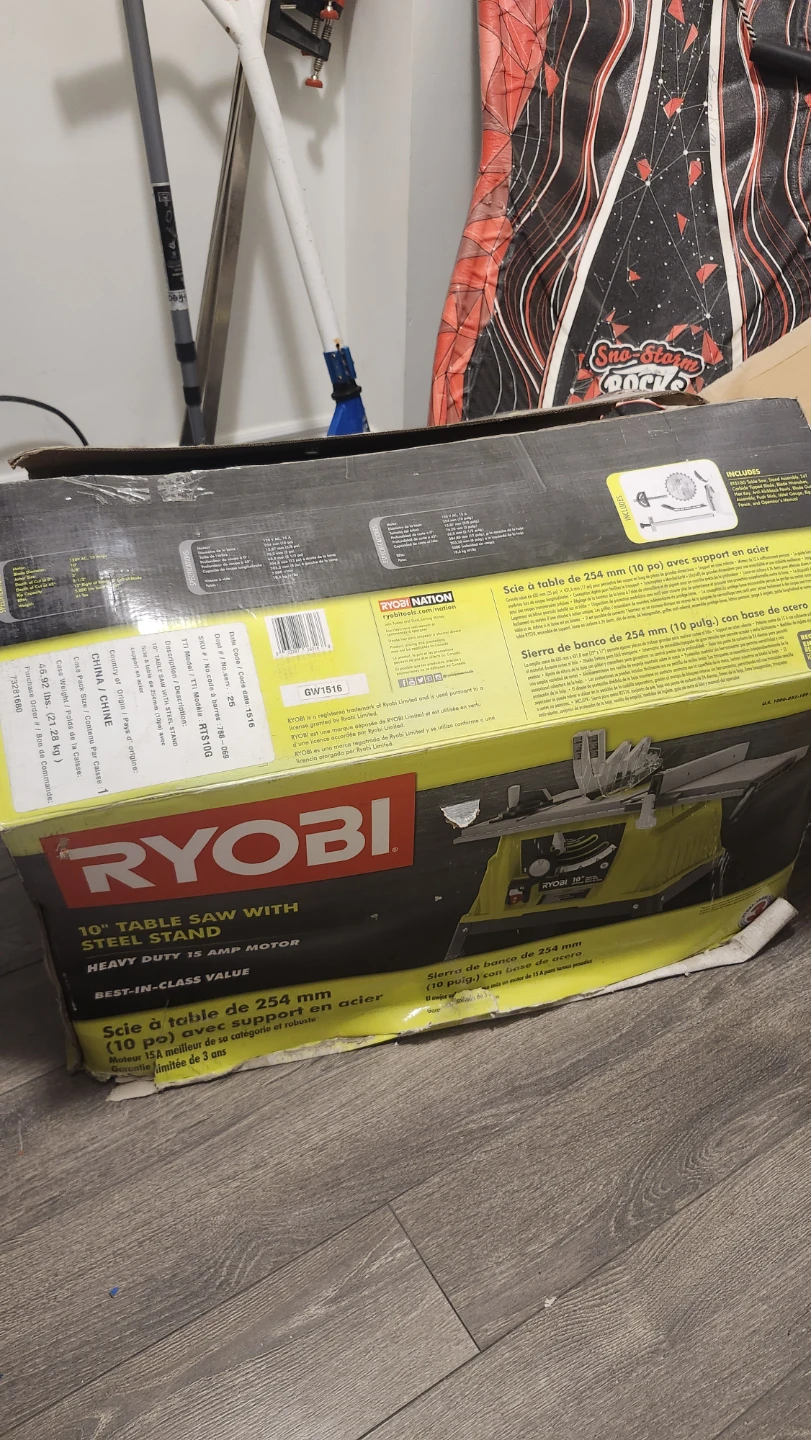 Selling a Ryobi 10" Table Saw with Steel Stand. It features a heavy-duty 15 amp motor and is designed for best-in-class value. The saw supports large ripping operations and includes a 12" crosscut blade. It operates at 120V AC, 15 Amps.