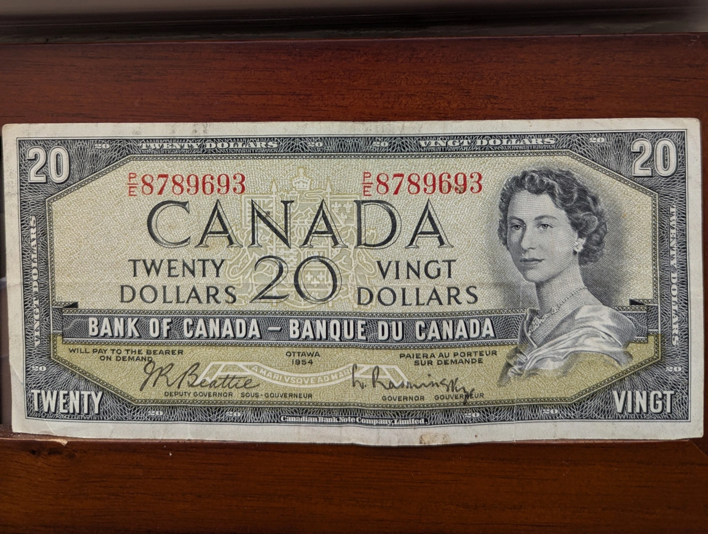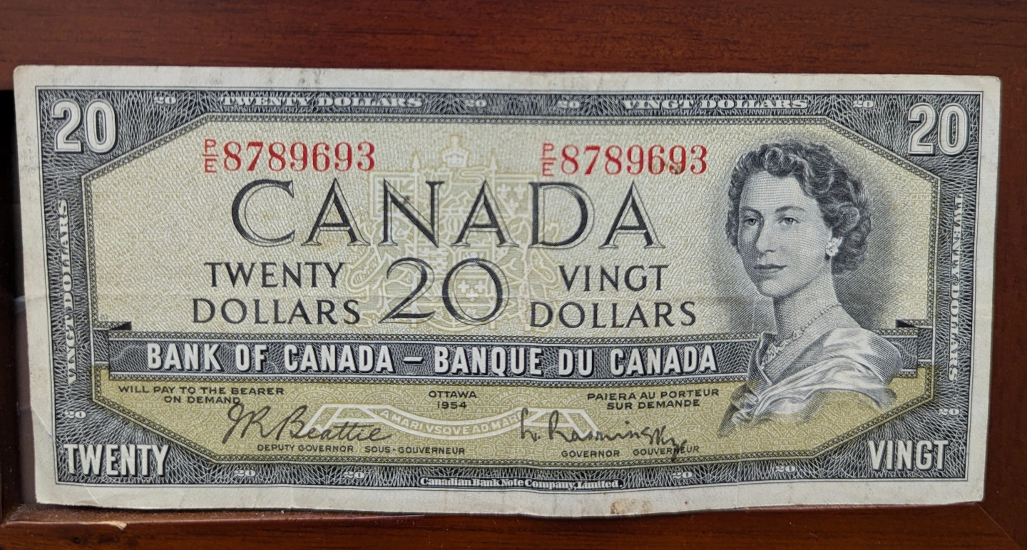 Vintage Canadian 1954 Twenty Dollar Bill