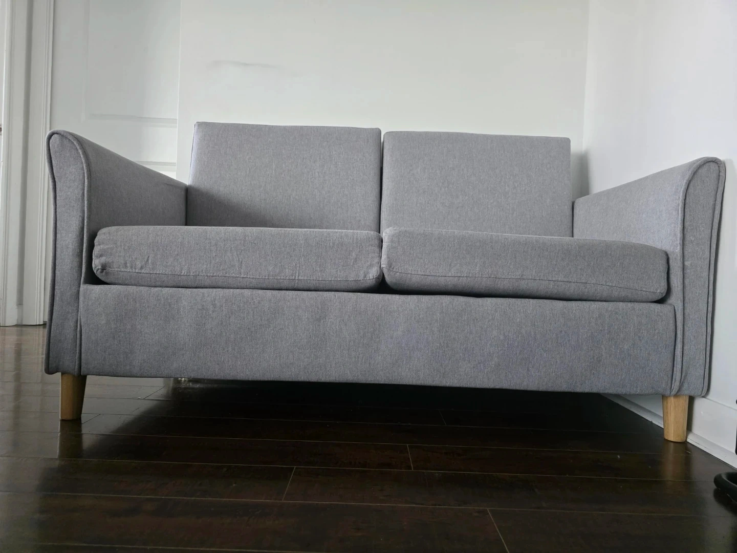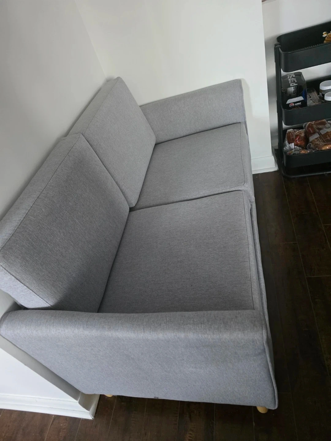 Selling a comfy white sofa, perfect for any living room! It comes with two black pillows to complete the look. Great for relaxing and watching your favourite shows