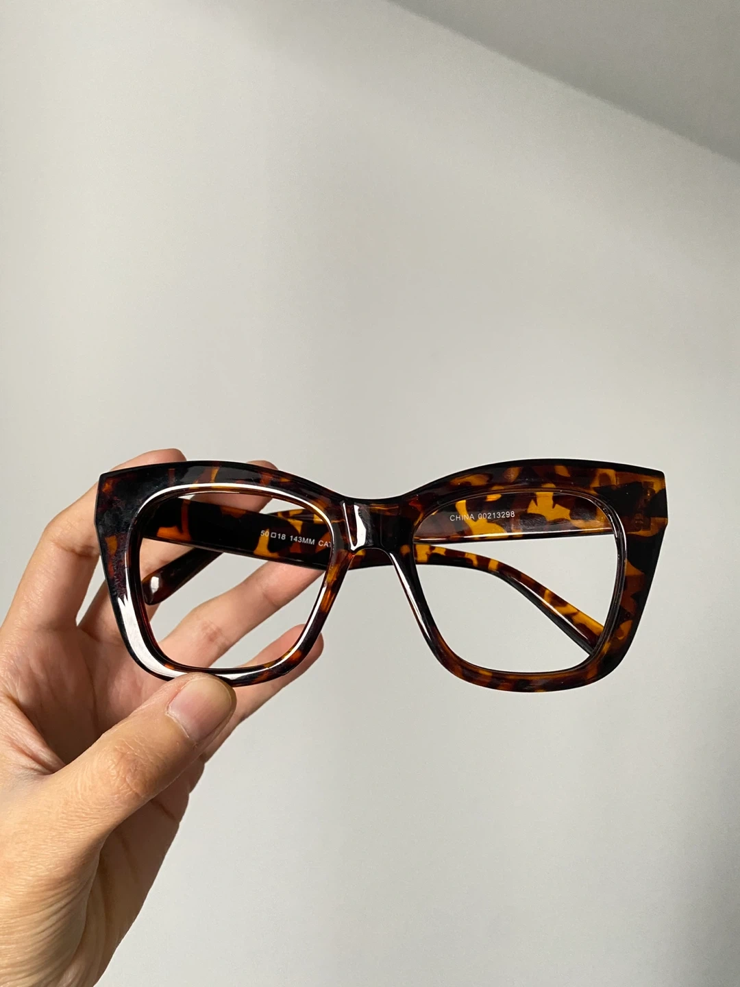 Selling a pair of glasses with a tortoiseshell pattern. They have a slight crack on the frame, as shown in the photos, but are otherwise in good condition.