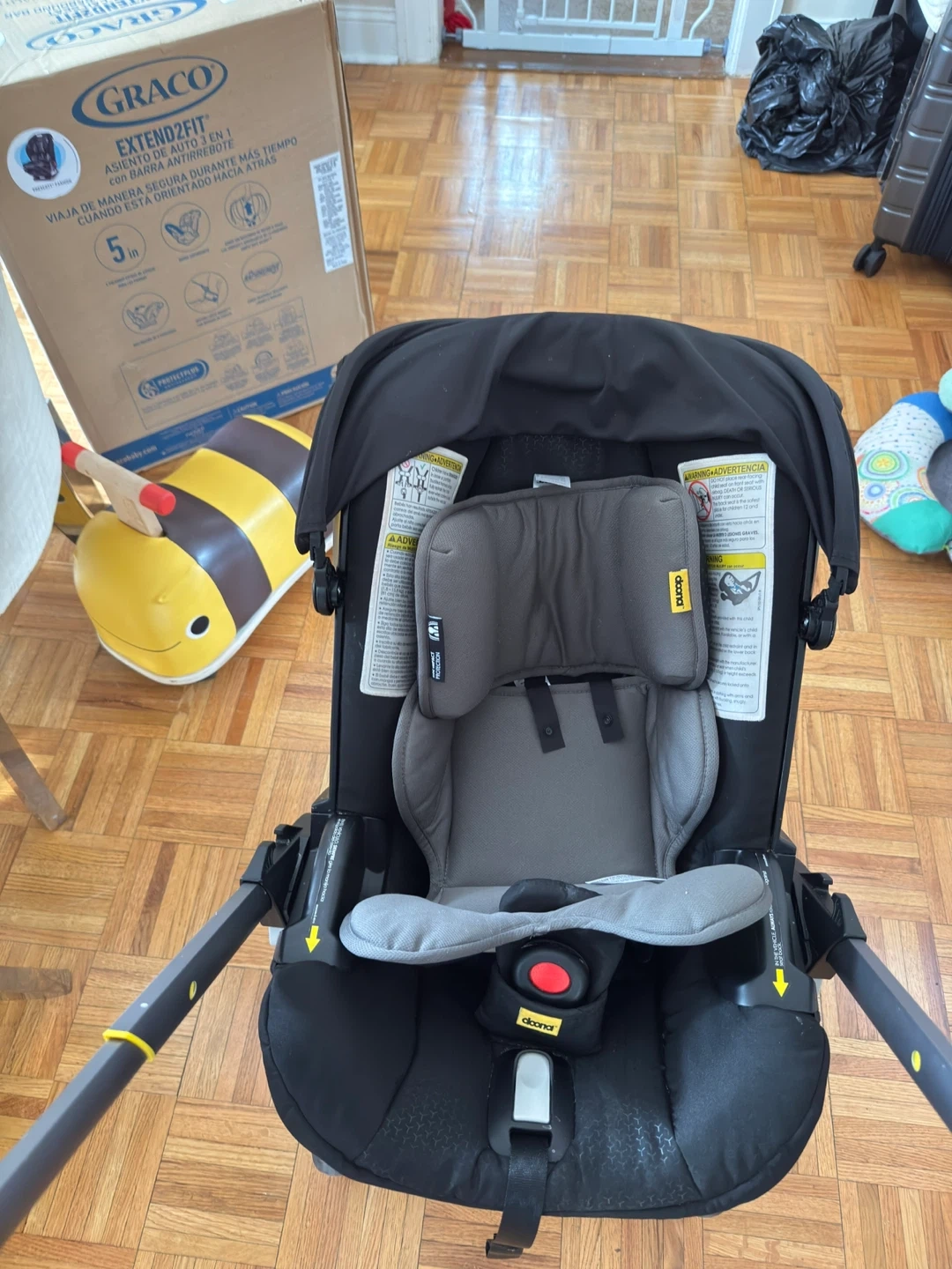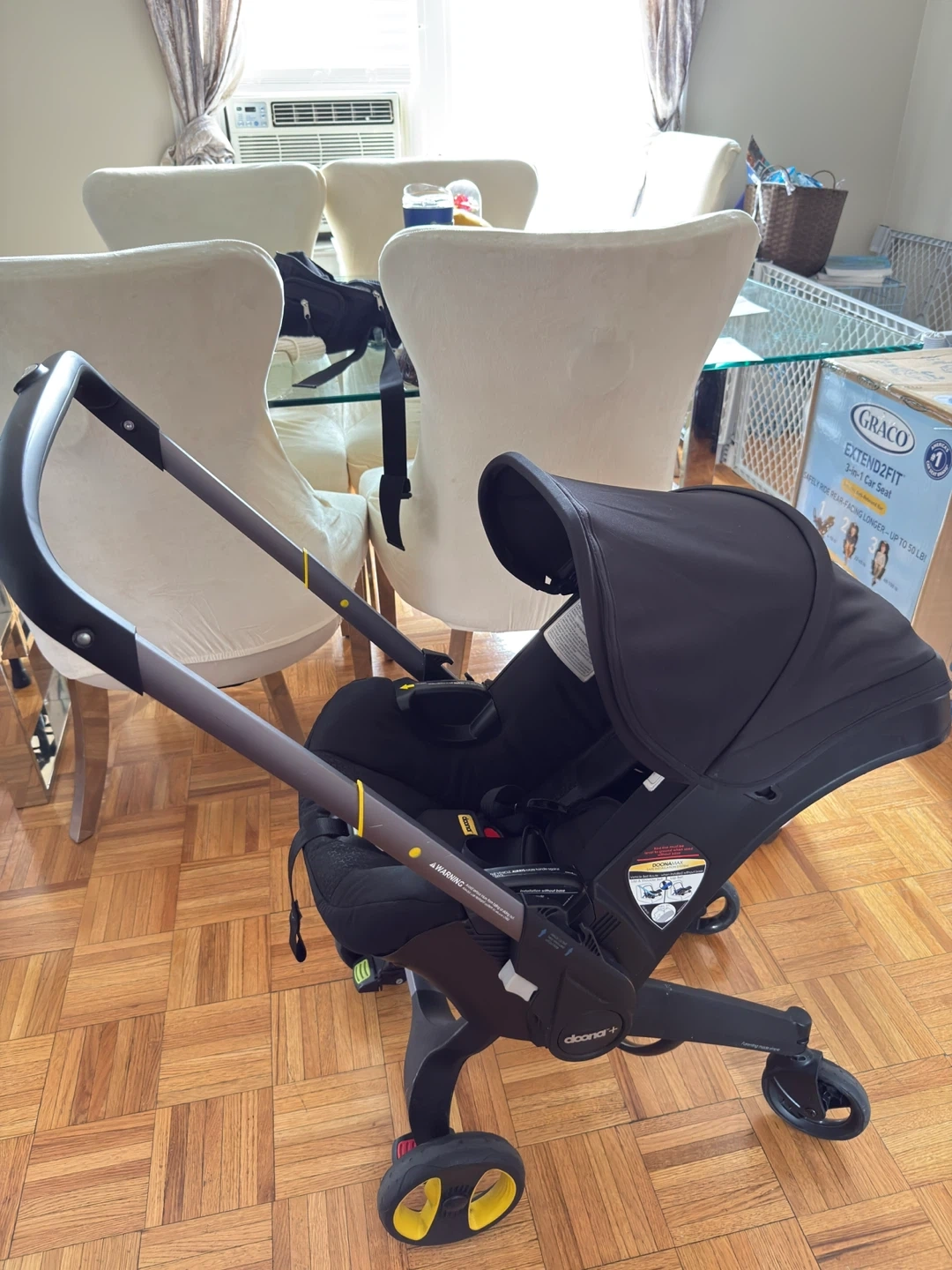 Selling a Doona infant car seat stroller in black. It's a convenient travel solution that combines a car seat and stroller in one! It is designed for safety and ease of use, making it perfect for parents on the go