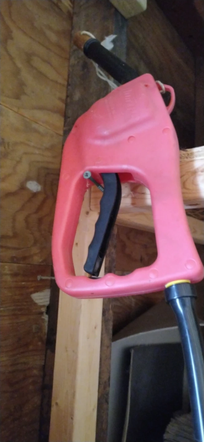 I'm selling my dad's red gasoline can it's a 6 g or 22.6 L it has a gasoline handle on it so you can control how much gas you put into whatever you're using my dad had it for his riding lawn mower he kept it in the shed I only seen him use it for once or twice it's like brand new the red is faded a little bit but he kept it locked in the shed where the lawn mower was maybe that's why