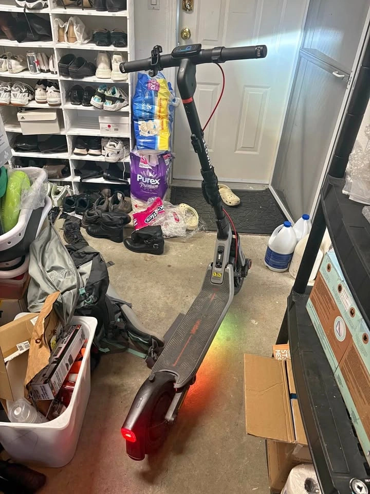 Selling a Ninebot E3 in solid condition. The paint on the deck is fading, which is common for Ninebots, but everything else seems to be working well. It has a cool underglow that can be controlled via the app. The scooter is half a year old since activation and has low kilometers. I will unbind the scooter and transfer it to your name upon sale. Reason for selling: I don't need it anymore. Comes with a charger. $420 or best offer, open to trades.