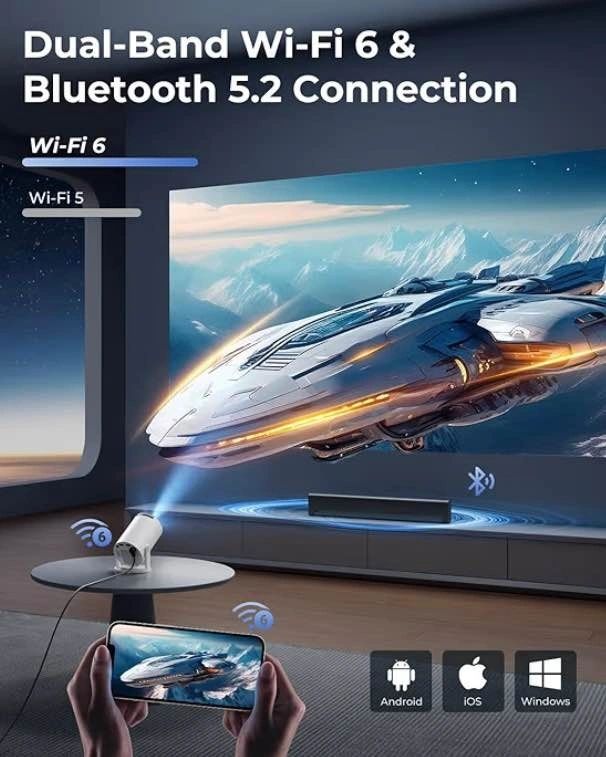 CLOKOWE Mini Projector WiFi/Bluetooth, Smart Portable
