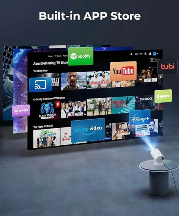 This is a CLOKOWE Mini Projector with WiFi and Bluetooth. It has built-in apps and is a smart portable projector with 180° rotation and auto keystone correction. It supports 1080P and is compatible with HDMI, USB, TV Stick, smartphones, and laptops. Feel free to message if you have any questions!