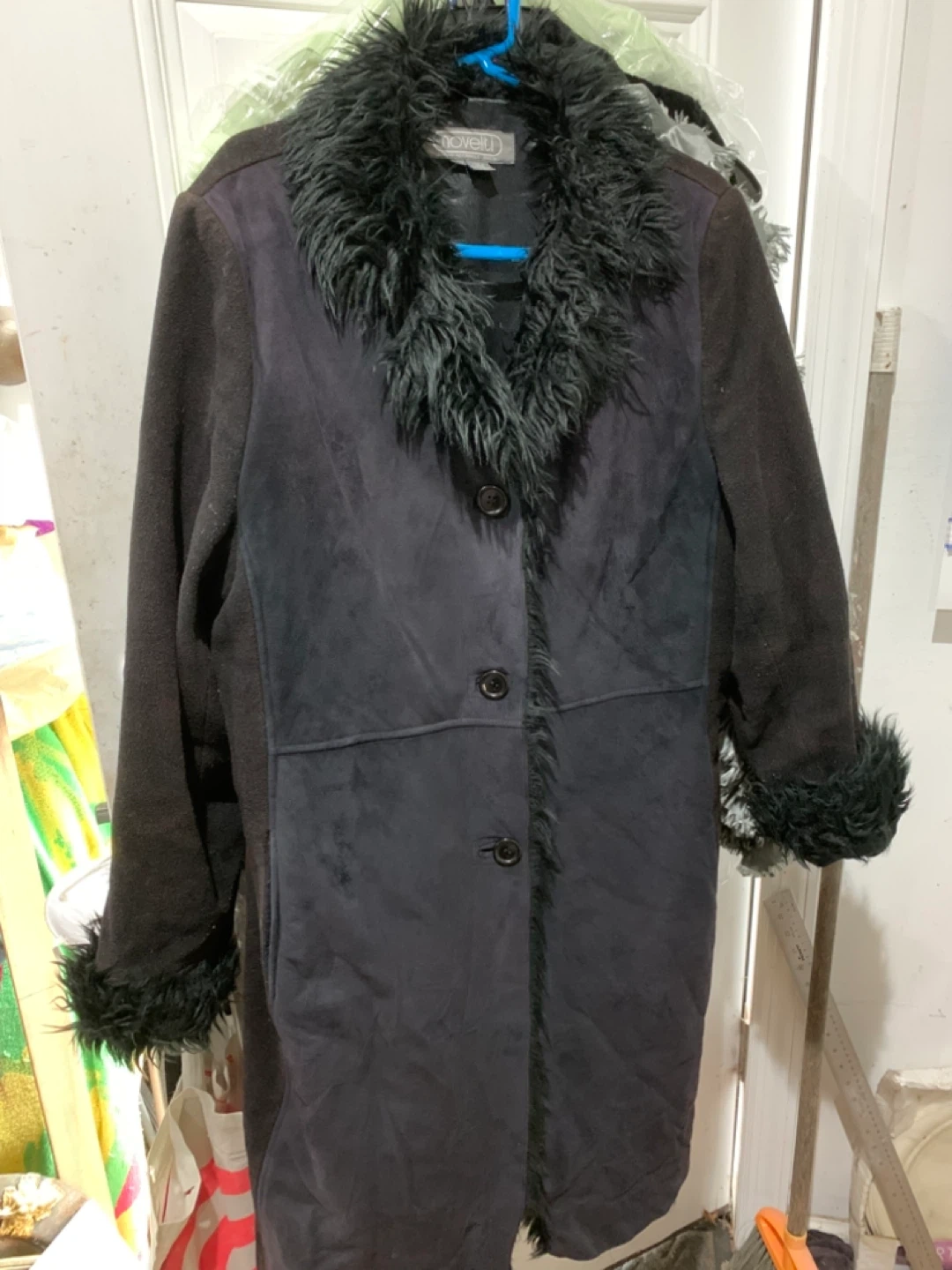 Selling a Novelti coat with a faux fur trim. It's black and looks like it's in good condition. Perfect for cold weather!