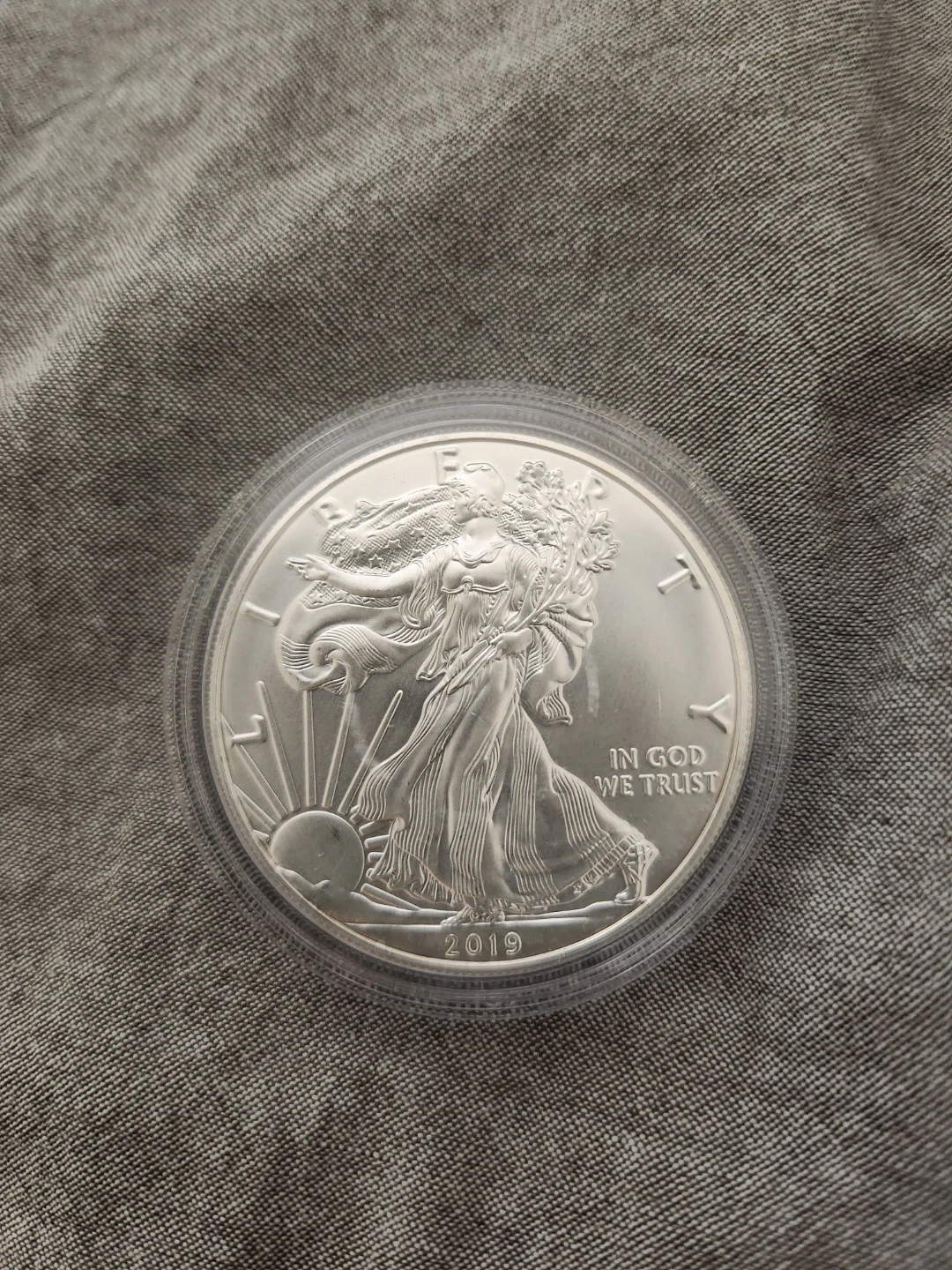 This is a 2019 American Silver Eagle coin. It's 1 oz of fine silver. A great collectible for coin enthusiasts! Cash only.