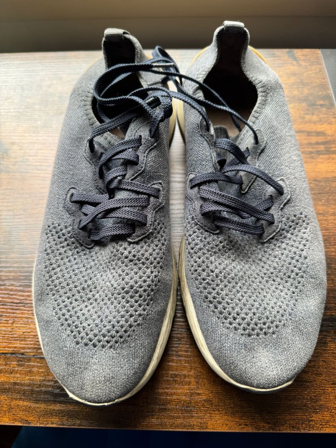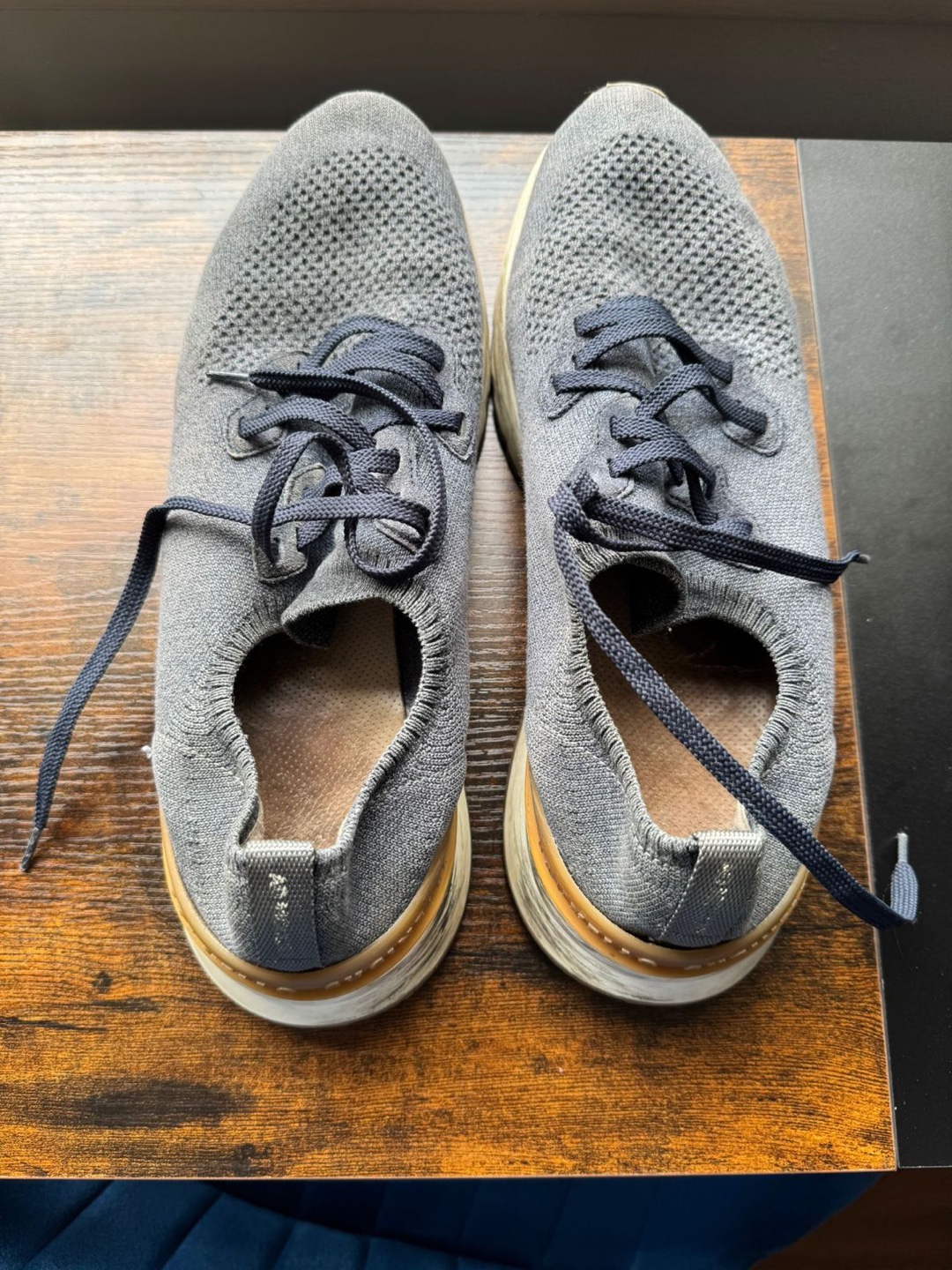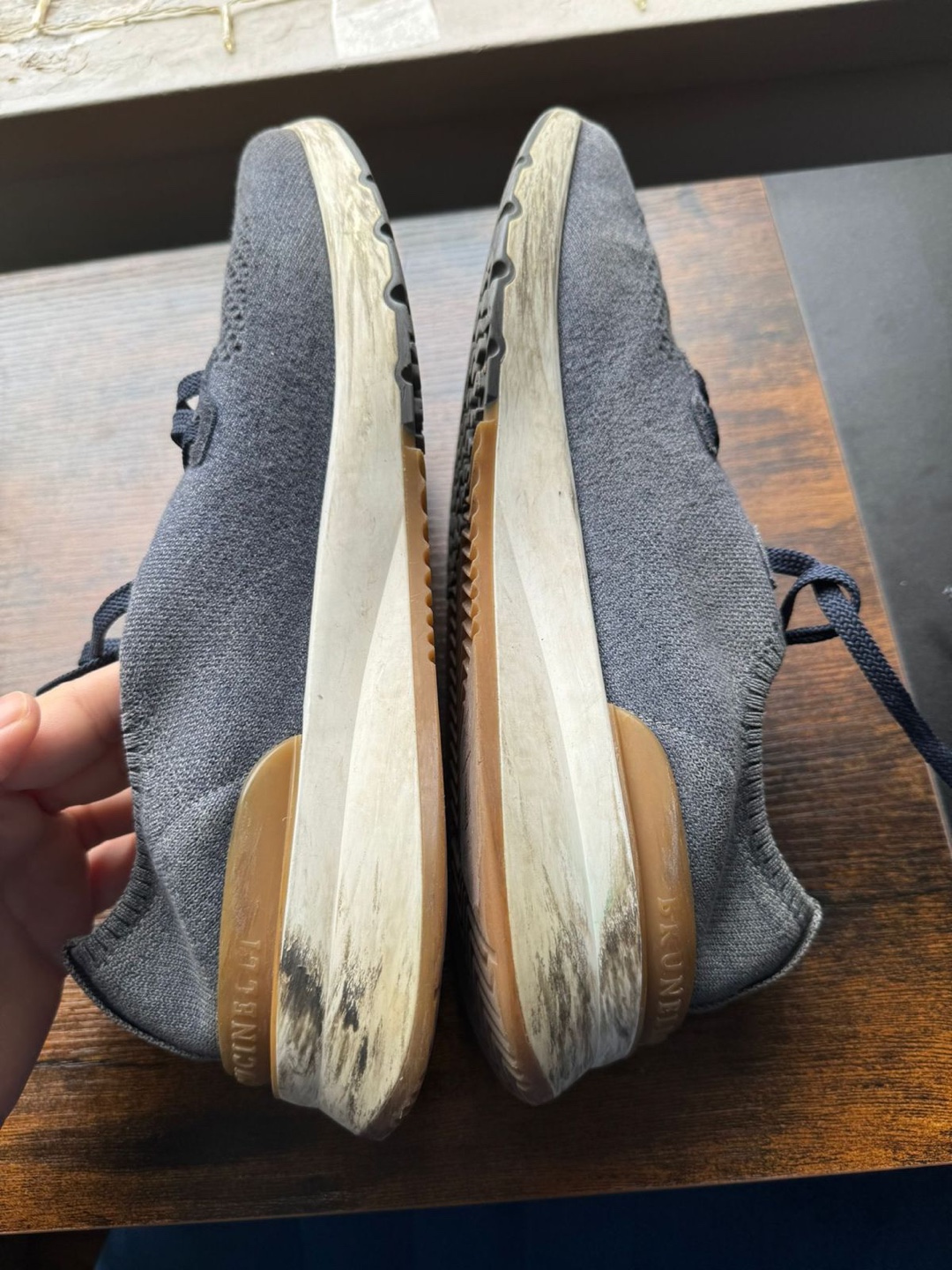 Discoloration at insoles and interior; moderate marking at outsoles; minor residue throughout; wear at soles. My suggestion would be to replace the insoles if you'd like and clean the sneaker that they will have another appearance. Walking on them are still great! These sneakers soles are amazing! No box.