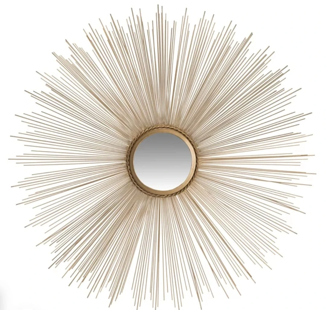 Elevate your space with this stunning sunburst wall mirror, designed to add instant sophistication and light to any room. Featuring a sleek round center with beautifully radiating metal rods, this mirror creates a bold yet timeless focal point.