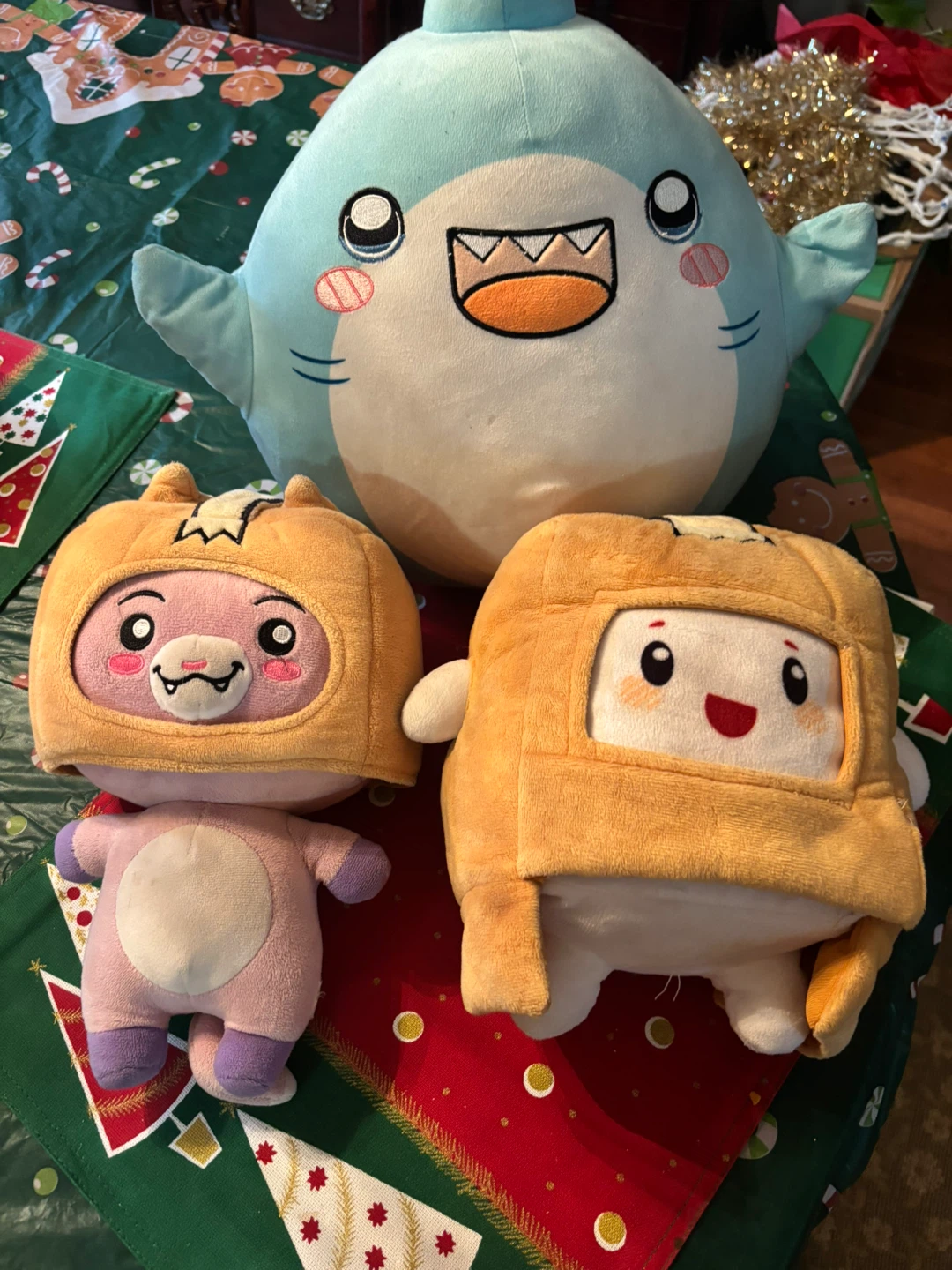 Selling a collection of Lankybox plushies! Included are Foxy, Boxy, and Shark. They're in great condition and ready for a new home with a Lankybox fan