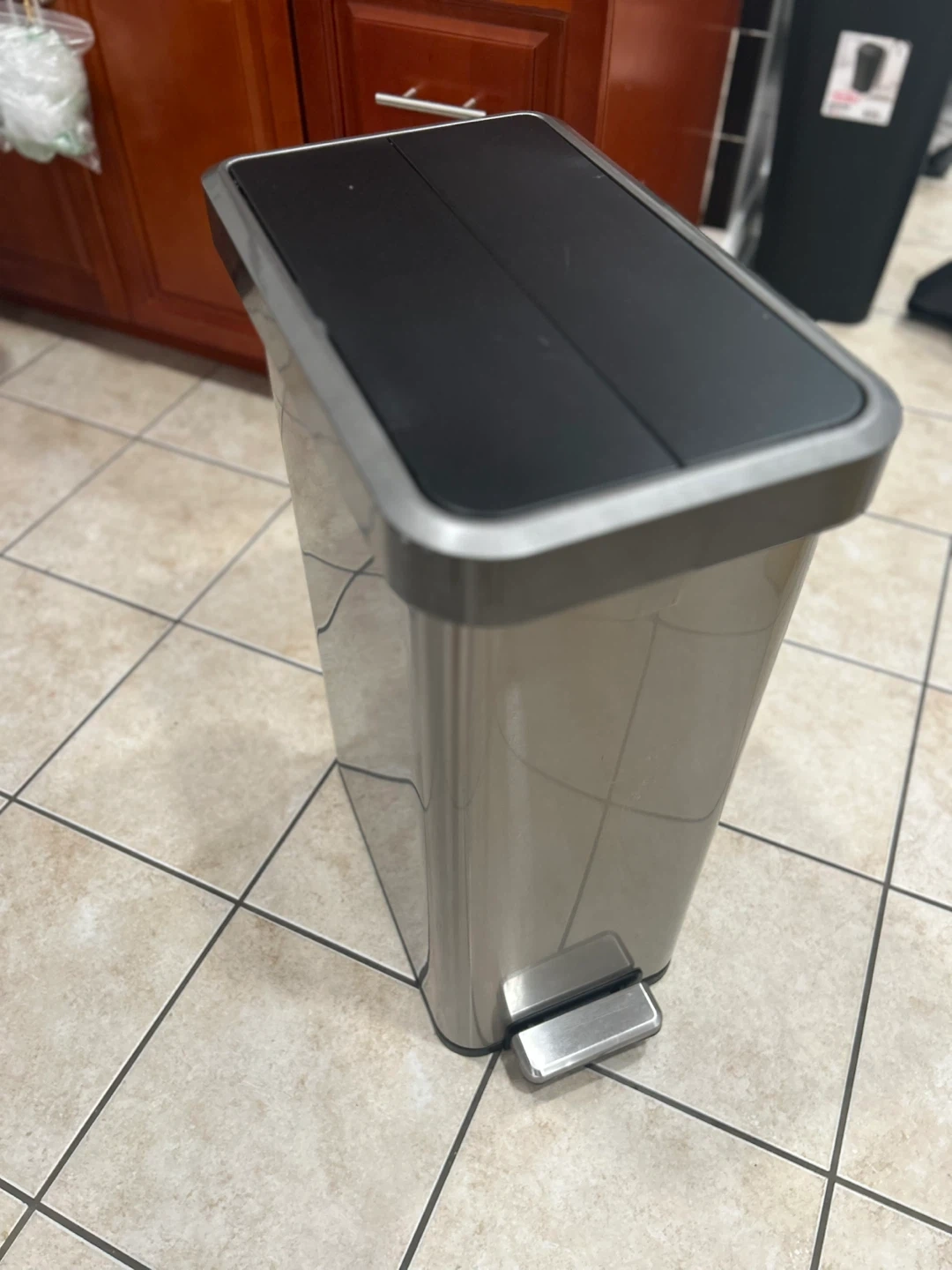 This stainless steel step trash can is great for any kitchen or office. It has a sleek design with a soft-close lid and a foot pedal for easy operation. The inner bucket is removable for easy cleaning. It's a durable and stylish way to manage your waste!