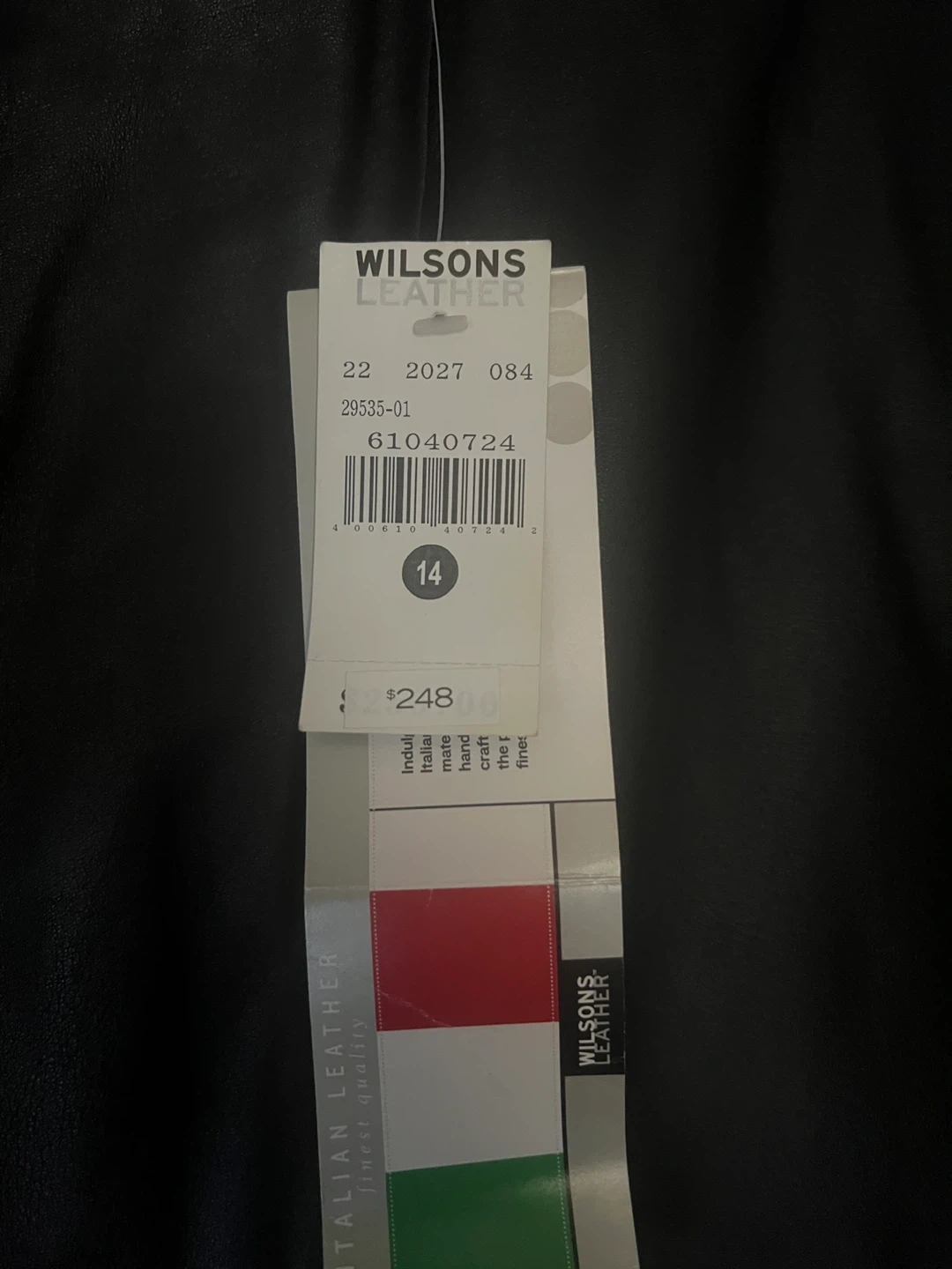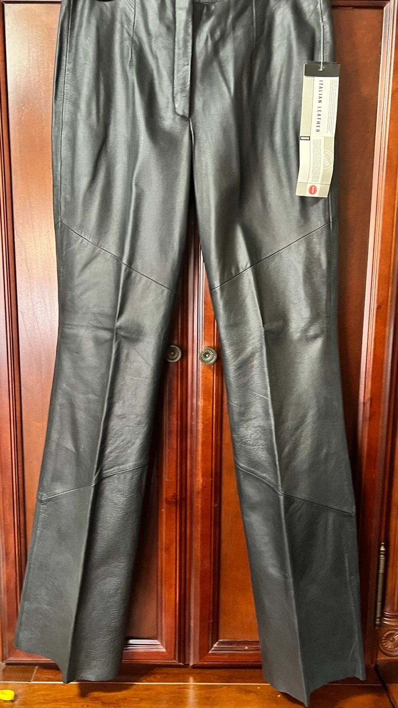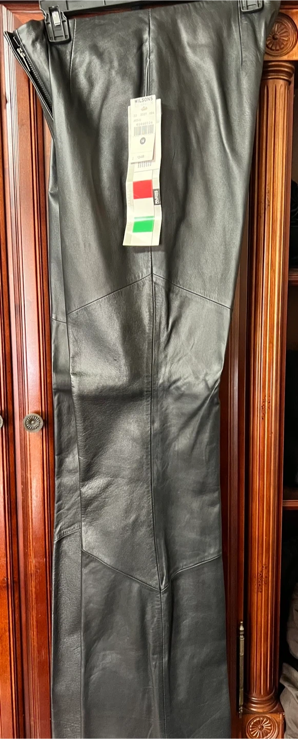 These are black Italian leather pants from Wilsons Leather. They're a size 14, size run small, fits like size 10.