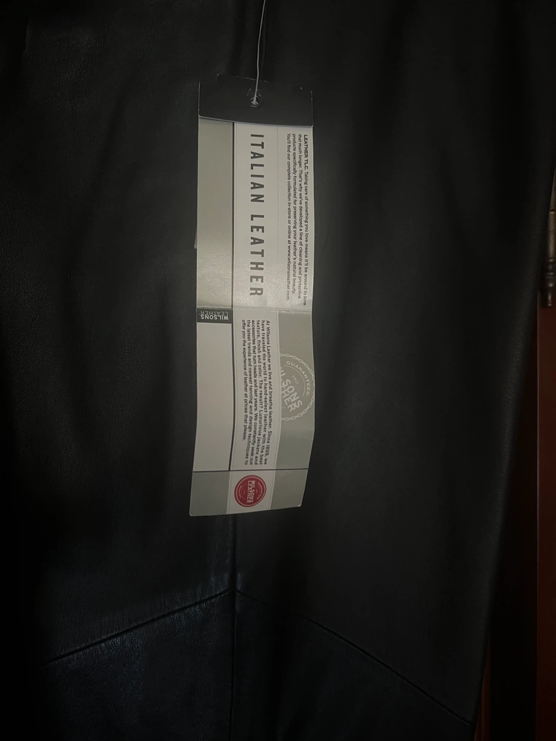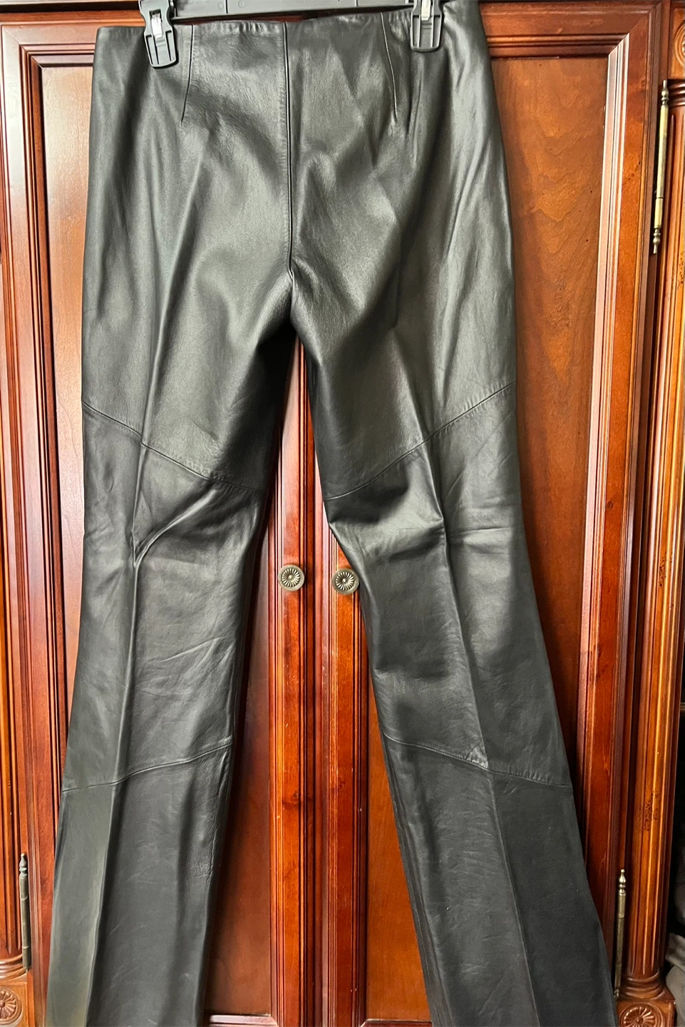 These are black Italian leather pants from Wilsons Leather. They're a size 14, size run small, fits like size 10.