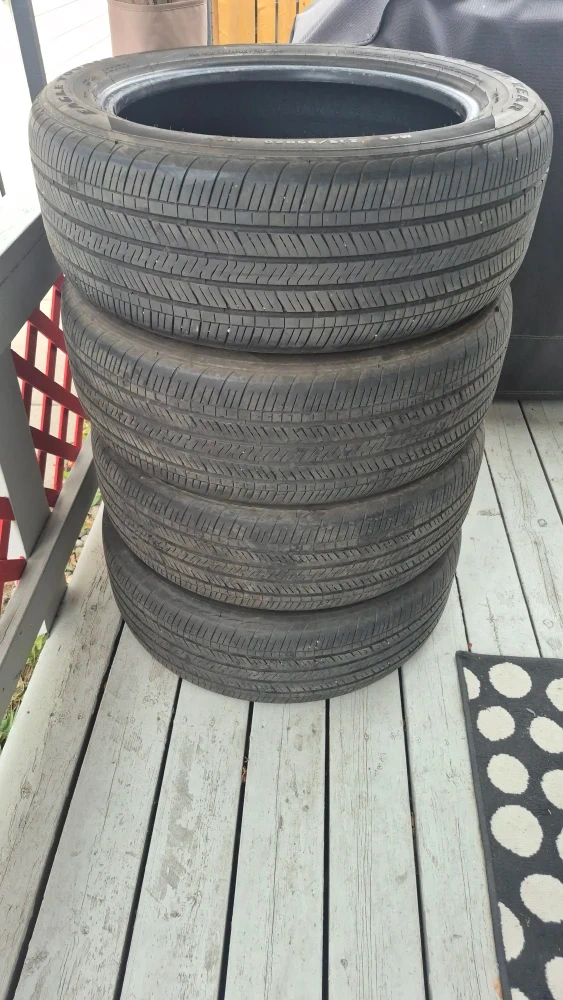 Selling a set of four Goodyear tires. The tire size is 235/55R20. They show some signs of wear, as you can see in the pictures, but still have some life left in them! About 70% tread