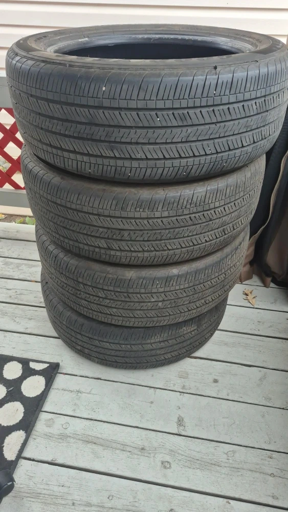 Selling a set of four Goodyear tires. The tire size is 235/55R20. They show some signs of wear, as you can see in the pictures, but still have some life left in them! About 70% tread