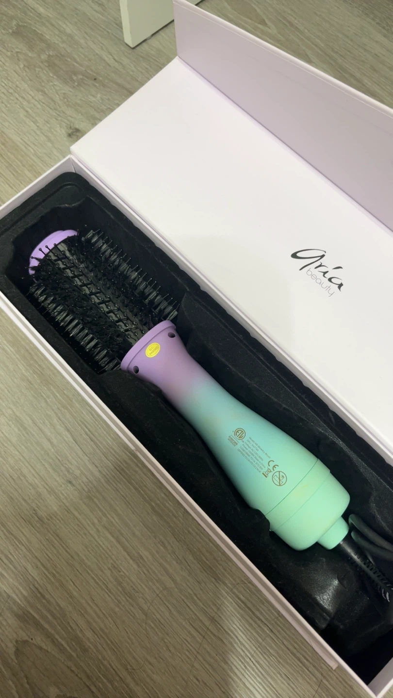 This Aria Beauty blowdry brush features an ombre design and is designed for shorter styles and extra volume. It offers heat settings for airflow control. It's perfect for achieving effortless, shiny blowouts.