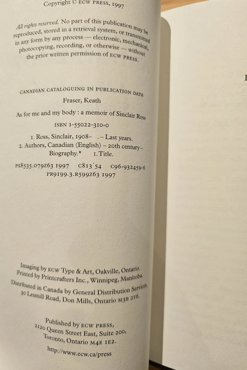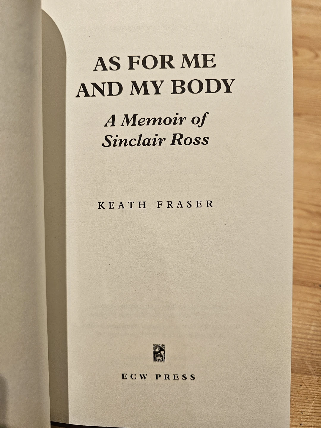 As for Me and My Body: A Memoir of Sinclair Ross by Keath Fraser