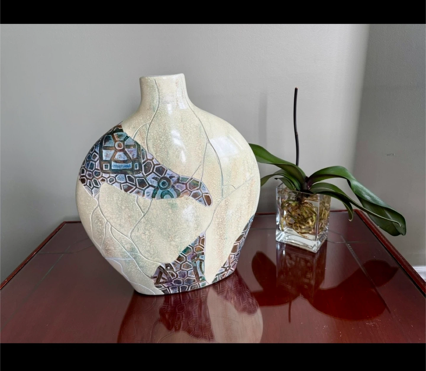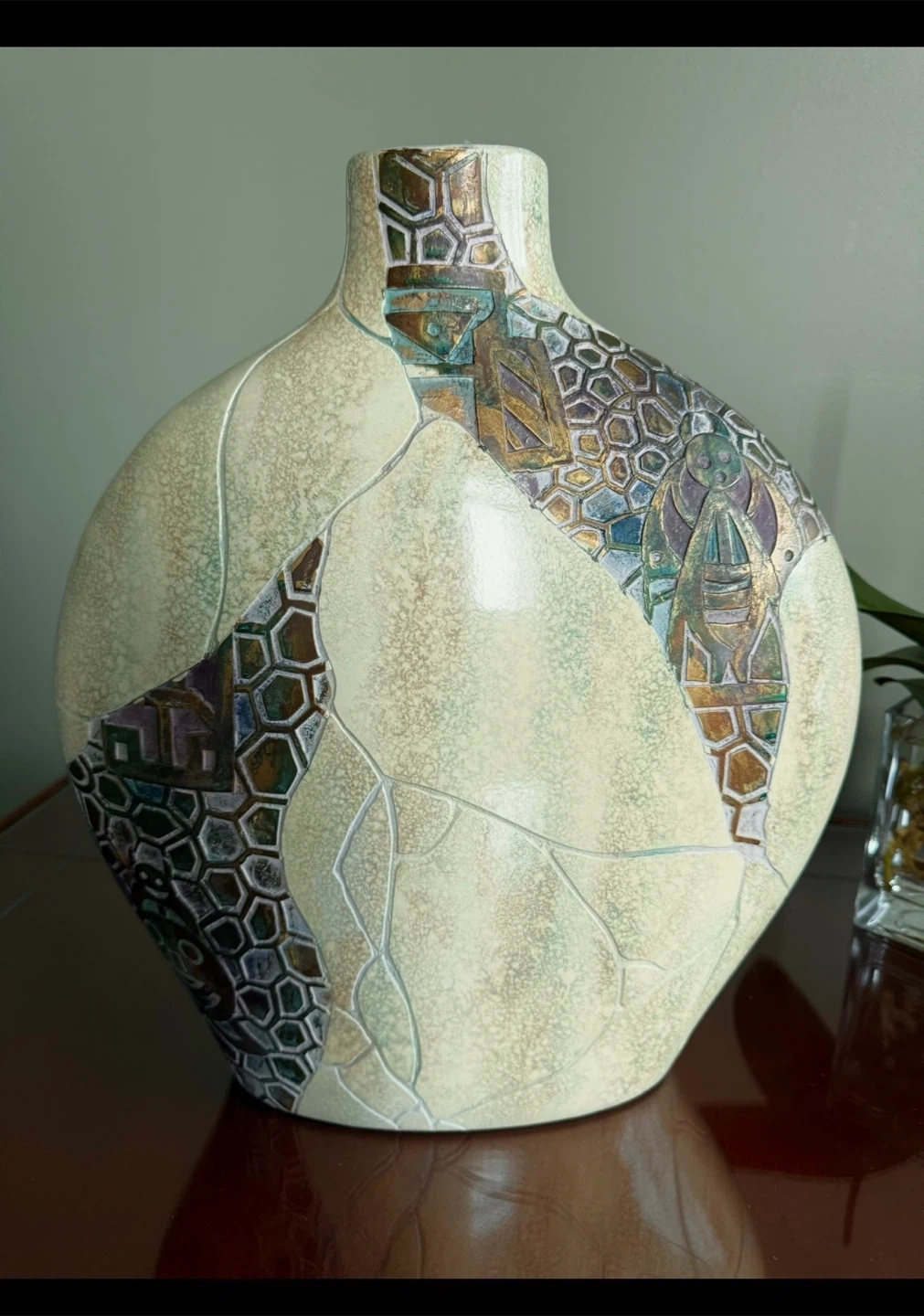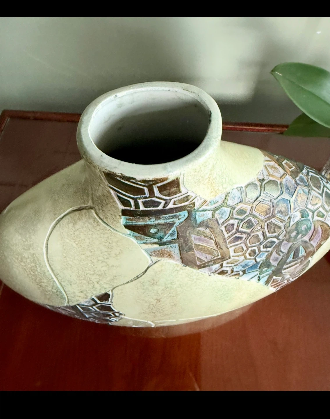 Like New Large Vintage Ceramic Raku-Fired Vase