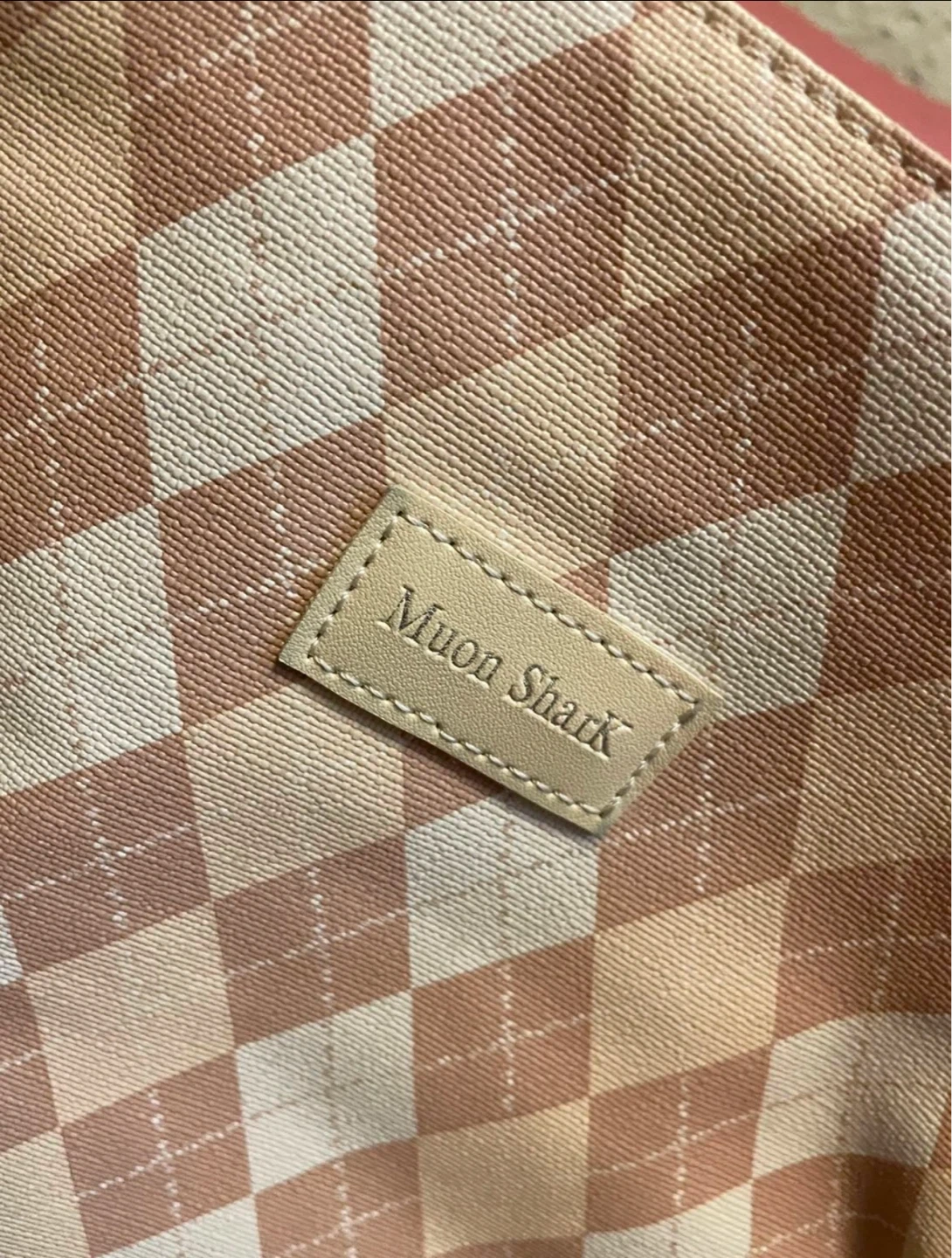 Muon Shark Argyle Tote Bag - Pink & Beige