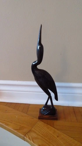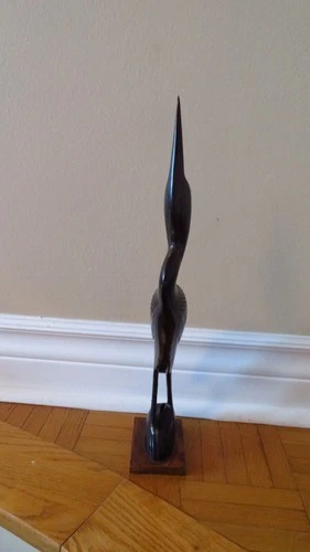 Vintage 60s Bird Stork Egret Heron Crane Carved Horn Figurine