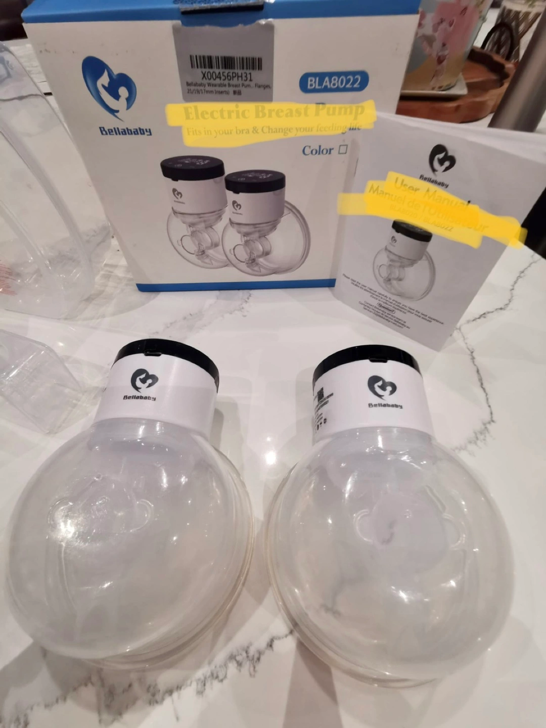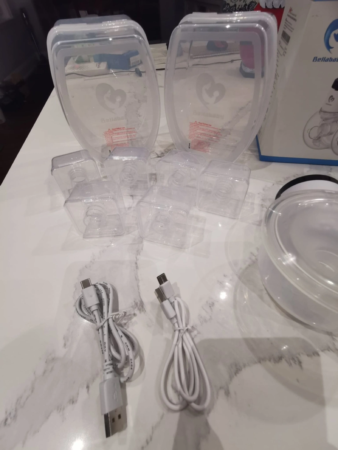 New Bellababy electric breast pump. Includes two pump units, various bottles and parts, two USB charging cables, and instruction manual. Everything shown in photos included.