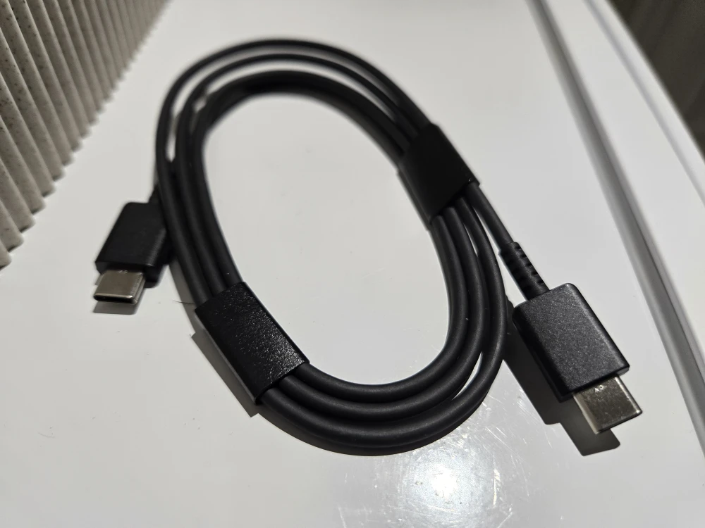 USB-C to USB-C cable in black. It's in great condition and ready to use!