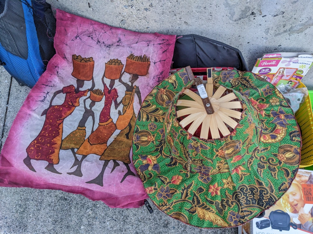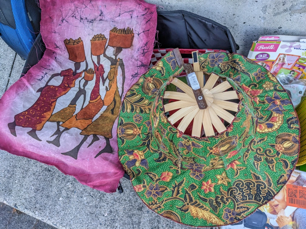 Balinese batik fabric folding fan hat w/ strap ⚽