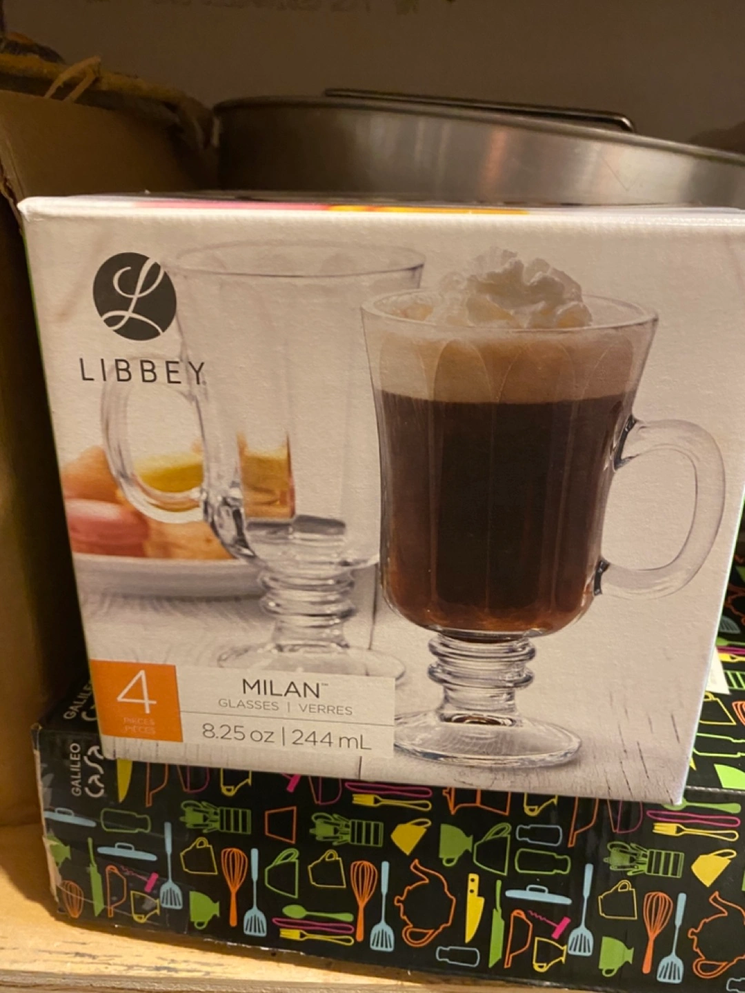 Selling a set of 4 Libbey Milan glasses! They are 8.25 oz / 244 mL each and are perfect for coffee or desserts. The glasses come in their original box
