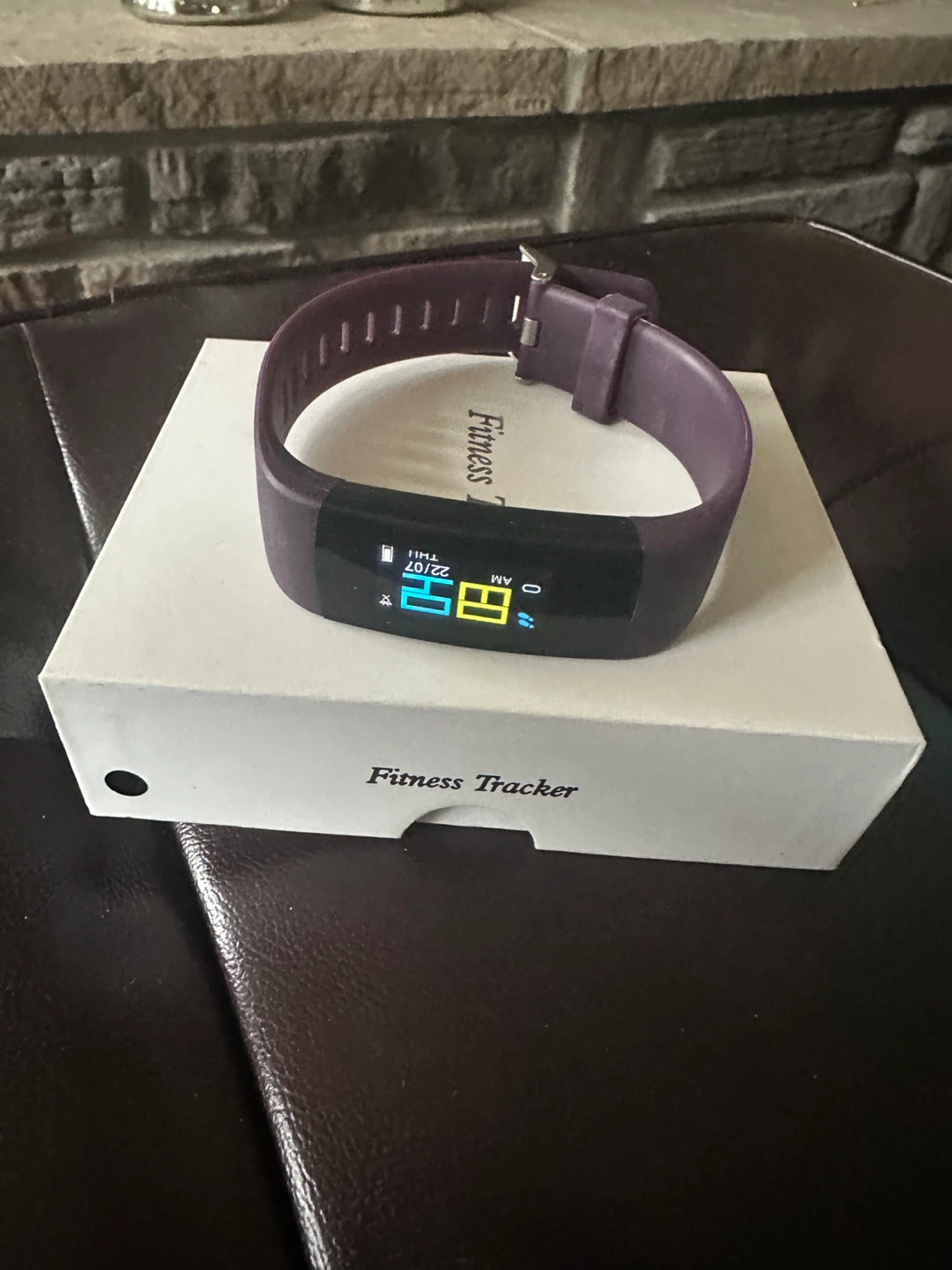 This is a smart bracelet fitness tracker in purple. It charges directly via USB port, no cable needed. Supports Bluetooth pairing with the 'JYouPro' app for use.