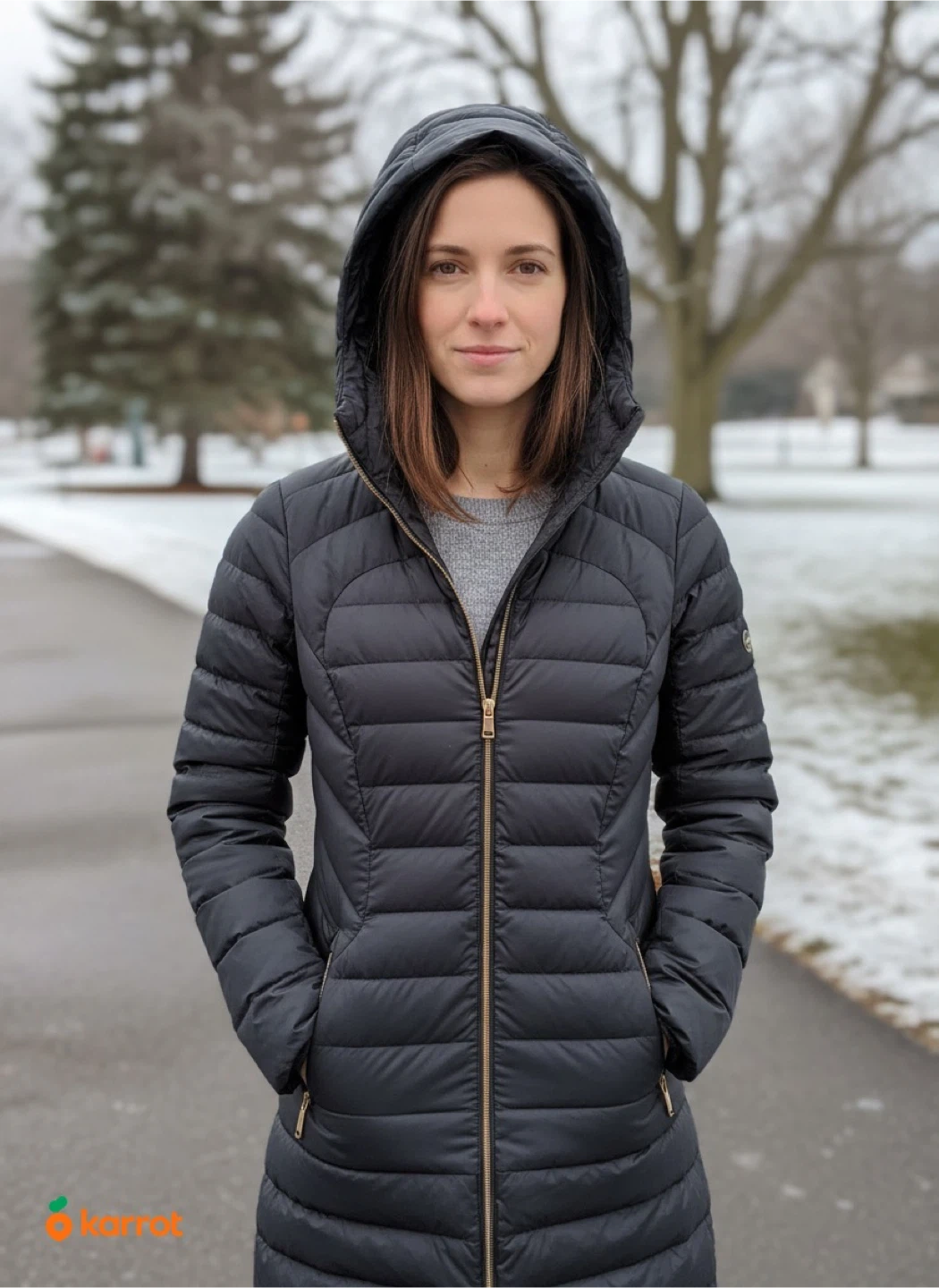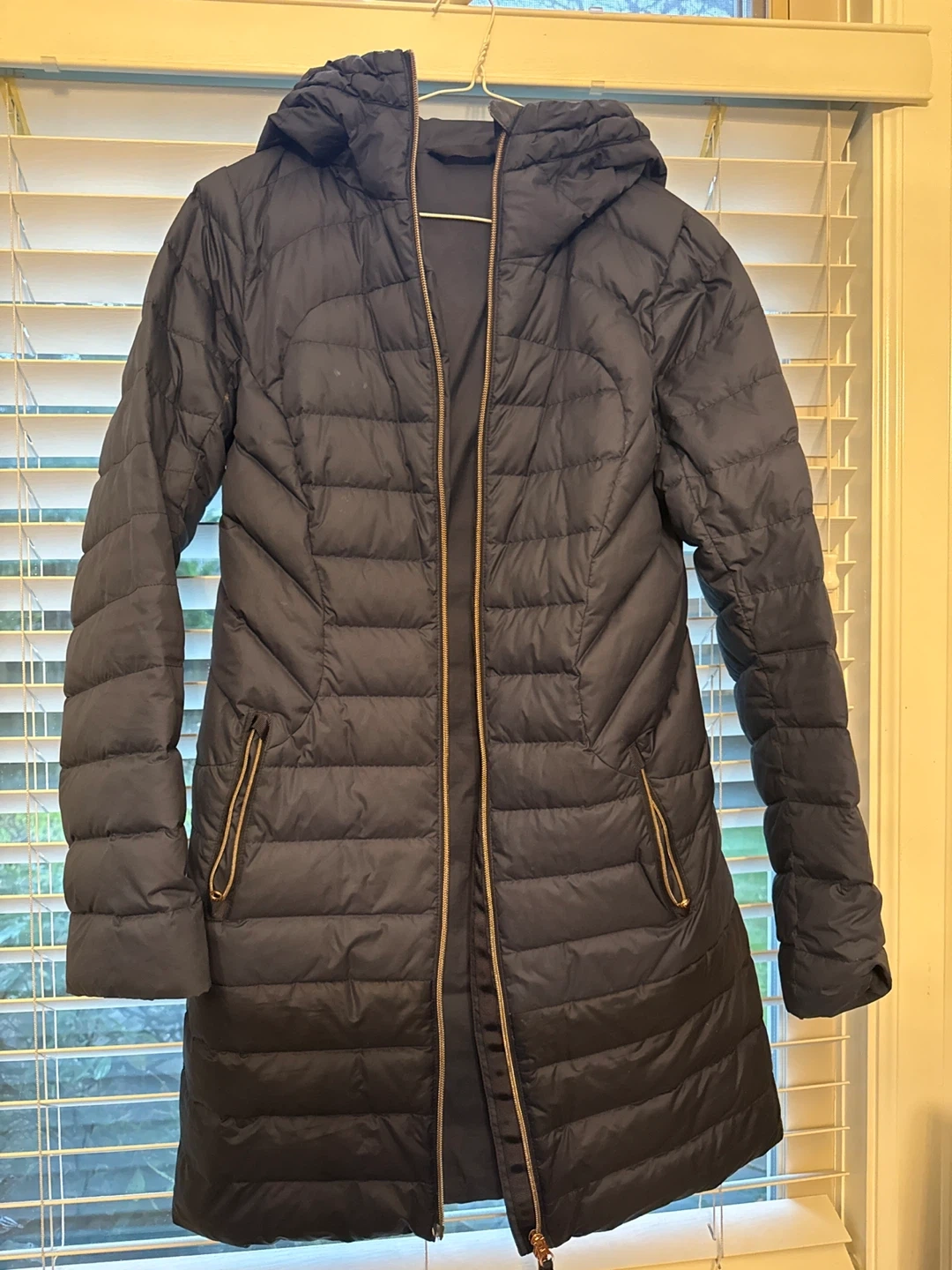 A Lululemon puffer jacket in great condition. It's a size 6 and features a hood for extra warmth. Perfect for those chilly Canadian days!