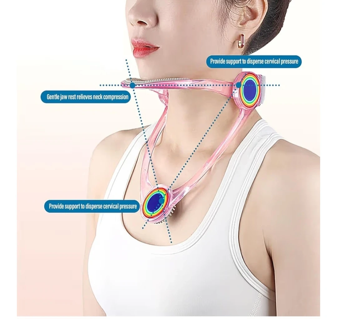 360° Adjustable Neck Support Brace, Cervical Neck Traction Device, Cervical Collar Neck Stretcher Neck Protector for Cervical Spine Pressure Relief ,Neck Brace for Neck Pain and Support (Pink)