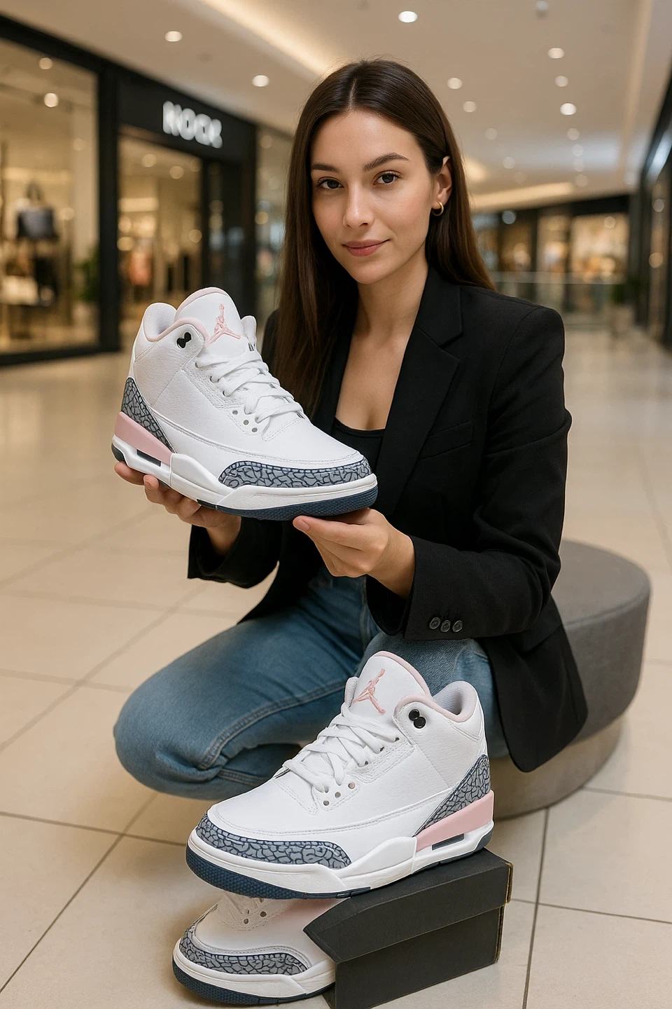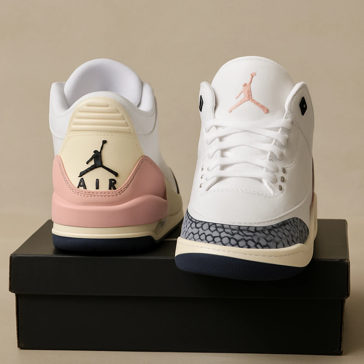 Air Jordan 3 Retro SP come with the original box! Elegant white sneakers with grey textured details and soft pink accents, crafted for refined style and all-day comfort. A perfect blend of modern luxury and timeless design.