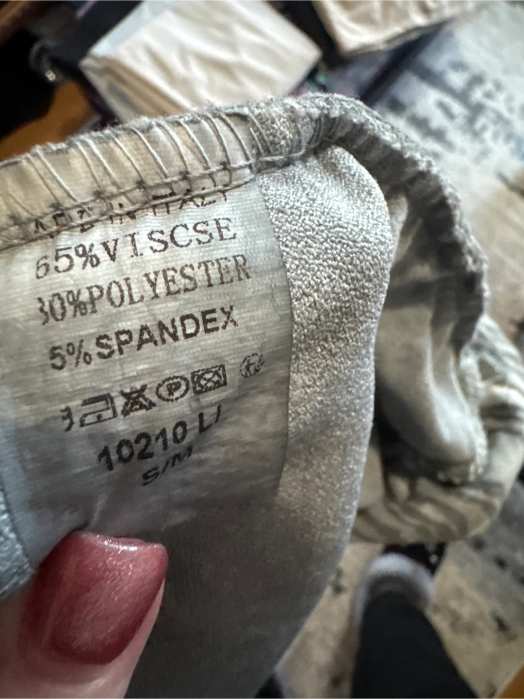 These comfy jogger pants feature a unique grey animal print. Made from a blend of 65% viscose, 30% polyester, and 5% spandex. Elastic waistband with drawstring. Very comfy
