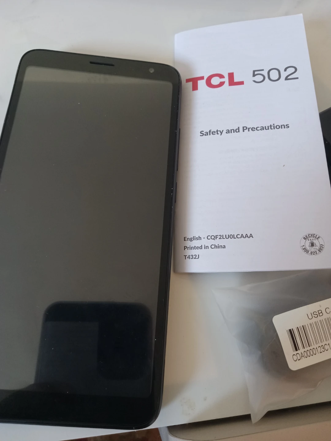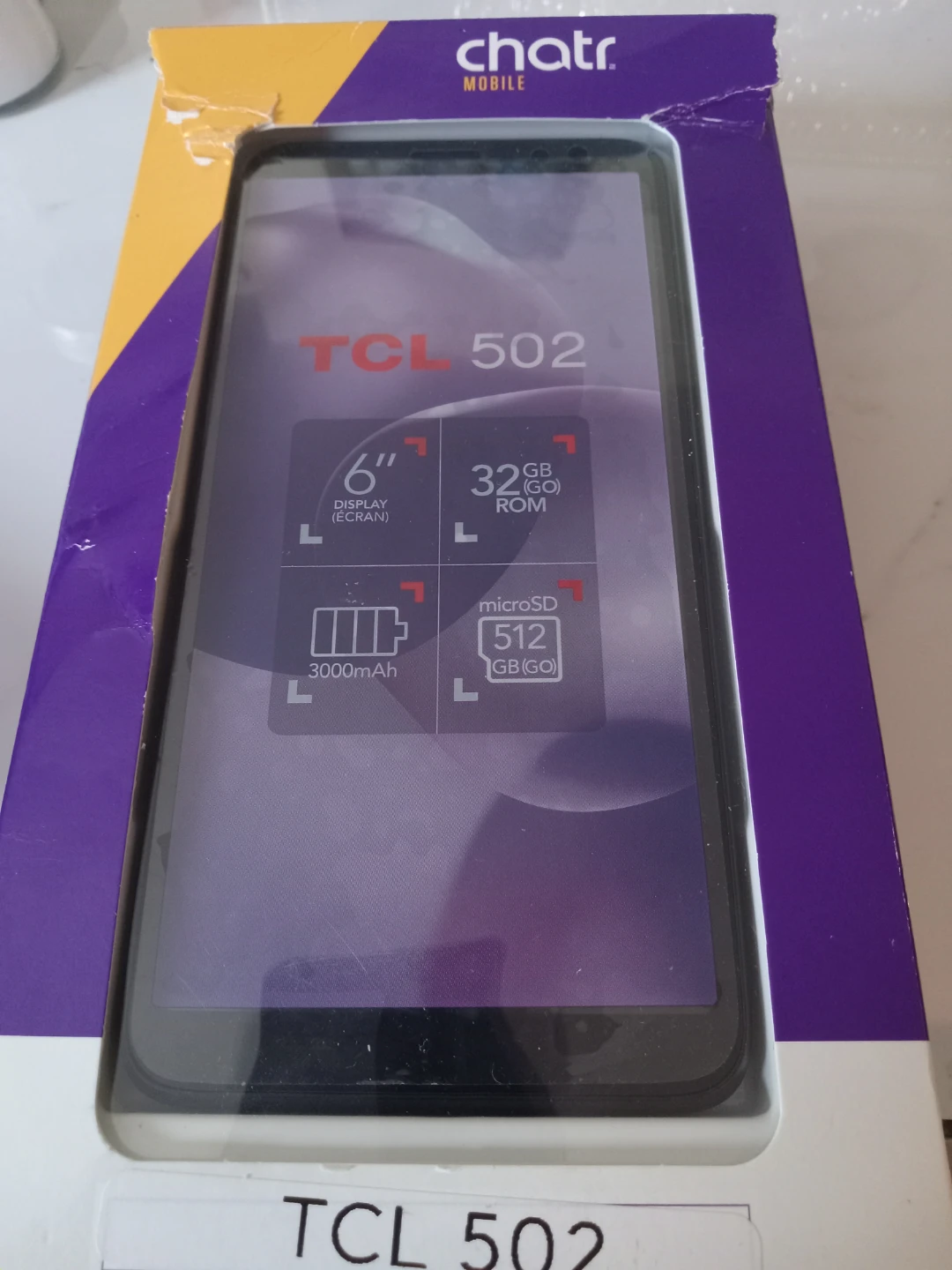 Selling a brand new TCL 502! It has a 6" display and 32GB ROM. Also features a 3000mAh battery and supports up to 512GB. Comes with the box, charger, and USB cable,