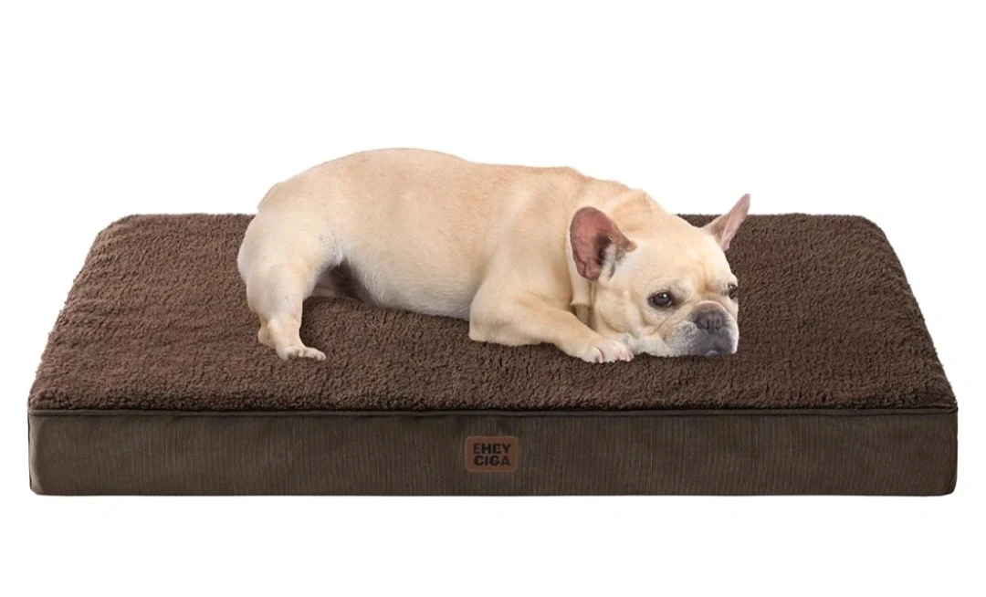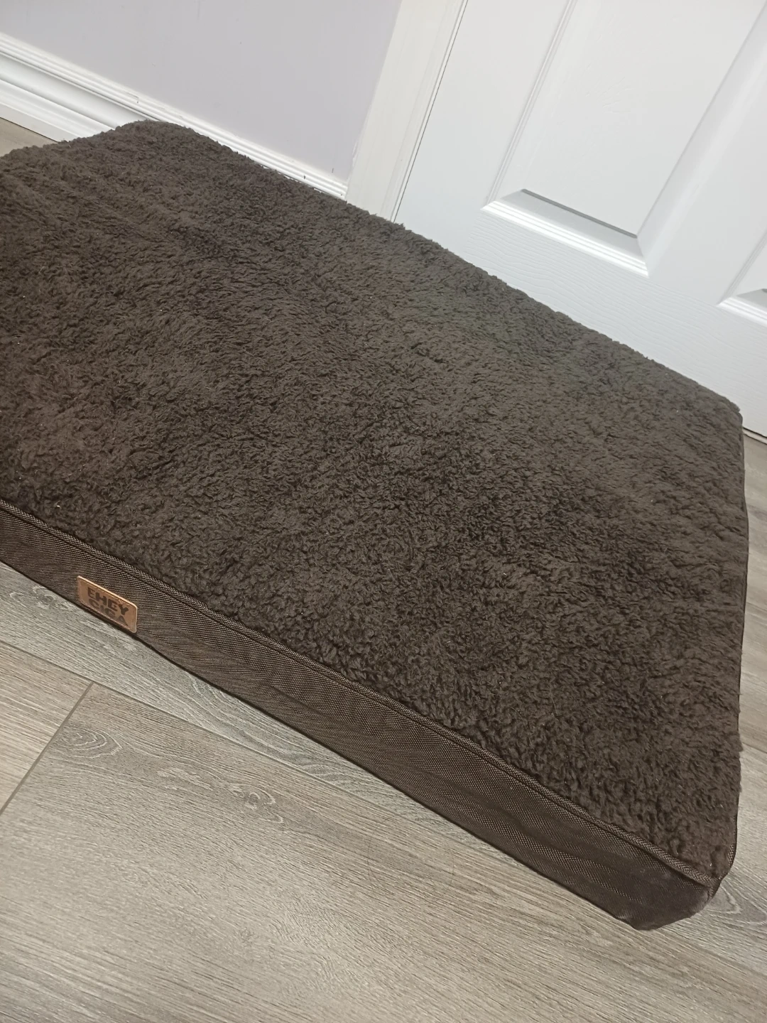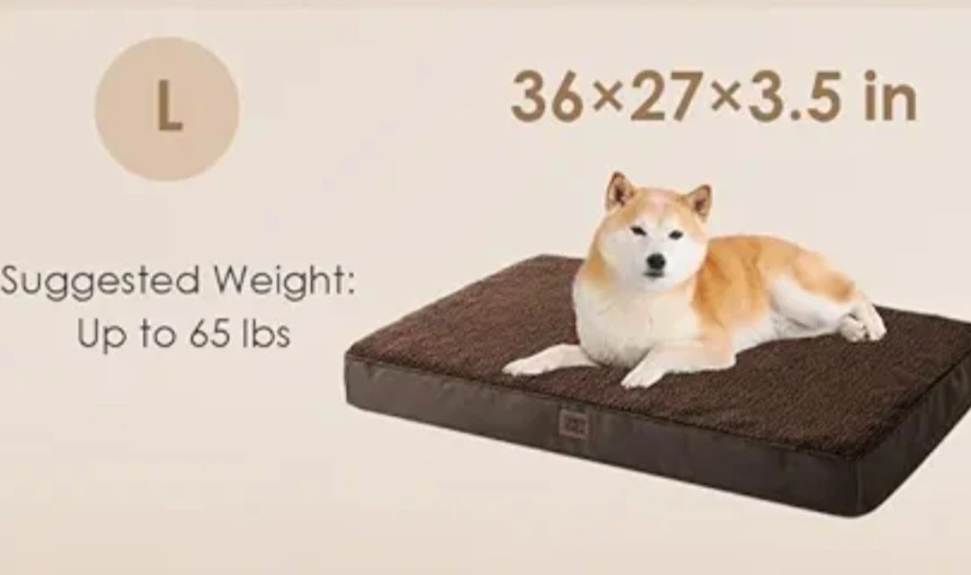 Selling a brand new Eheyciga Cozy brown sherpa dog bed, size large. It measures 36x27x3.5 inches and supports pets up to 65 lbs. Plush surface for ultimate comfort. Good for keeping your furry friend comfy!