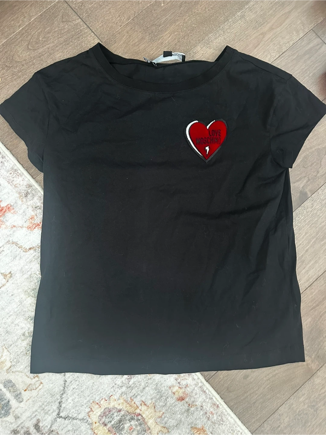 Love Moschino Black Heart Patch T-Shirt Size 46